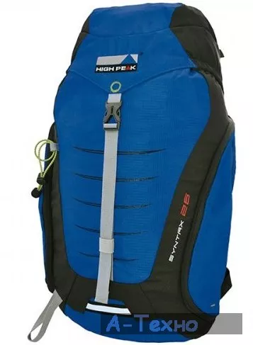 Рюкзак туристический High Peak Syntax 26 (Blue/Dark Grey), Объем, л: 26, Вес, кг: 0.625, Размеры, см: 42х26х17, Материал: 420D Rip Stop / 600D Polyester - прочный, стойкий к износу и истиранию, обладает водозащитными свойствами благодаря внутреннему покрытию PVC, устойчив к воздействиям тепла и света, не разрушается под действием ультрафиолетового излучения.