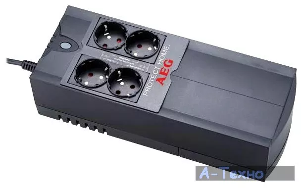 Источник бесперебойного питания AEG Protect Home 600 (6000011844) - персональный домашний источник бесперебойного питания мощностью 600 ВА. Прекрасно подходит для защиты компьютера, периферии, защиты модемной или телефонной линии, коаксиального ТВ-кабеля. ИБП данной серии обеспечивают надёжную защиту оборудования от скачков напряжения и кратковременных отключений электроэнергии. Источник бесперебойного питания AEG Protect Home оборудован обычными евро-розетками для подключения нагрузки: три из них используются и для фильтрации от помех и для питания нагрузки от батарей, а одна розетка предназначена для защиты от скачков напряжения.