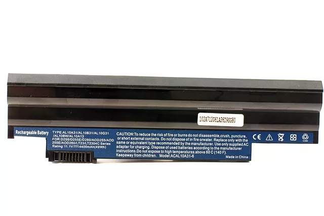 Аккумулятор для ноутбука ACER AL10B31/Black/11,1V/4400mAh/6Cells - это надежная, современная аккумуляторная батарея, благодаря которой увеличивается срок автономной работы вашего ноутбука. Литиево-ионный аккумулятор для ноутбука ACER AL10B31/Black/11,1V/4400mAh/6Cells хорошо держит заряд и не подвержен так называемому эффекту памяти