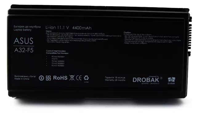 Аккумулятор для ноутбука ASUS A32-F5/Black/11,1V/4400mAh/6Cells - это надежная, современная аккумуляторная батарея, благодаря которой увеличивается срок автономной работы вашего ноутбука. Литиево-ионный аккумулятор для ноутбука ASUS A32-F5/Black/11,1V/4400mAh/6Cells хорошо держит заряд и не подвержен так называемому эффекту памяти
