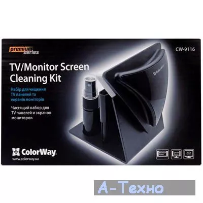 ColorWay (СW-9116) - набор обладает инновационный держателем для компактного хранения всех компонентов набора в одном месте. Улучшенная эргономичная ручка с мягким резиновым держателем предназначена для лучшего контроля процесса очистки. Запатентованный "безугловой" дизайн щетки и улучшенный материал ворсы щетки, обеспечивает более эффективную очистку для широких TV экранов.