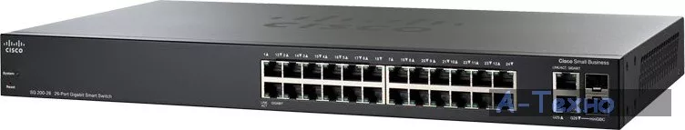 Коммутатор сетевой CISCO SG200-26 (SLM2024T-EU) - 24-х портовый Gigabit Ethernet управляемый коммутатор, ориентированный на предприятия малого бизнеса. Он обеспечит высокую производительность и надежность работы в сети для построения базовой сети бизнес-класса. Коммутатор начального уровня предоставит самые необходимые сетевые функции, функции управления и защиты сети. Вы сможете увеличить скорость работы своей сети и поддерживать работу приложений, предъявляющих высокие требования к пропускной способности.