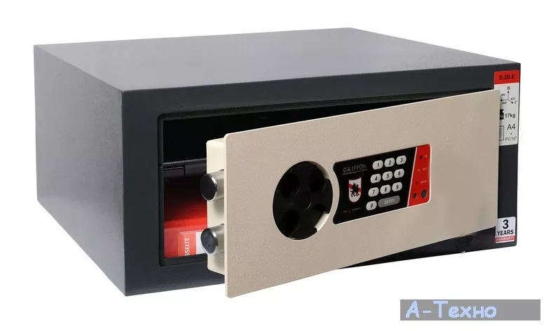 Сейф мебельный Паритет-К S.20.E (S20E) , внутренний размер (ВхШхГ) 200х430х365 мм, внешний размер (ВхШхГ) 196х424х311 мм, вес (кг) - 18, ел.код, полиця