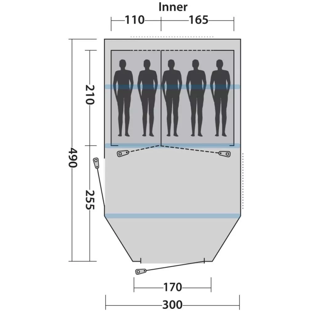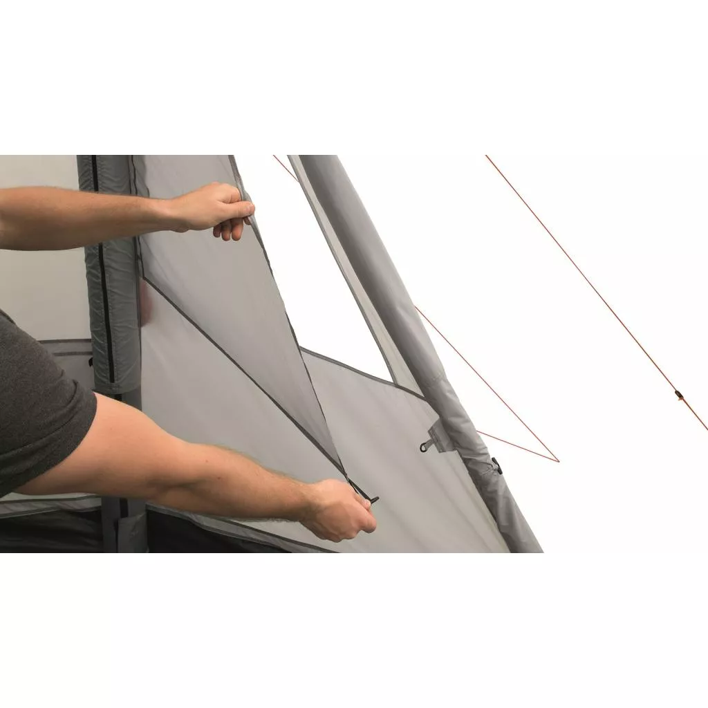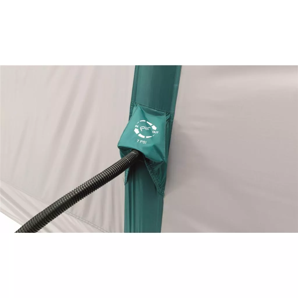 Палатка с инновационным надувным каркасом Easy Camp Base Air 500 вмещает пять человек в двух просторных затемненных спальнях со съемной перегородкой и длиной спального места 210 см. Благодаря удобному расположению внешних надувных клапанов, палатка быстро устанавливается с помощью комплектного насоса. Высота потолков в жилой зоне позволяет стоять взрослому человеку в полный рост. Регулируемая круговая система вентиляции обеспечивает постоянный приток свежего воздуха, а также избавляет от образования конденсата. Анти-москитная сетка используется на всех вентиляционных отсеках и внутренних дверях, защищая от насекомых. Easy Camp Base Air 500 характеризуется универсальным дизайном и подходит для семейного отдыха на выходных.