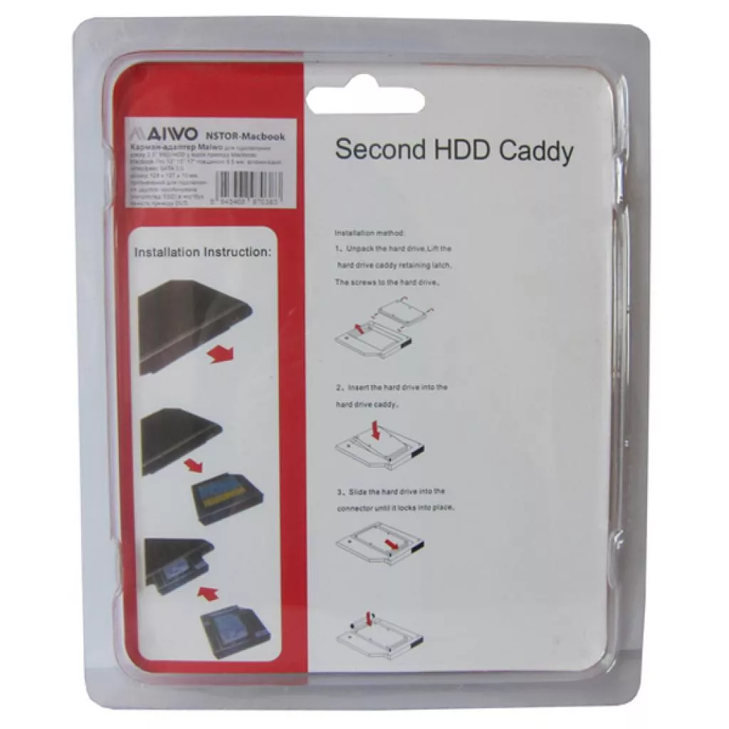 Фрейм-переходник Maiwo 2,5" HDD/SSD SATA3 Macbook (Pro/Air) 13" 15" 17" (NSTOR-Macbook) представляет собой адаптер для подключения 2.5" HDD/SSD SATA 3.0 в отсек привода ноутбуков Apple Macbook. Адаптер предназначен для подключения второго жесткого диска (к примеру SSD) в ноутбук вместо оптического привода SuperDrive.