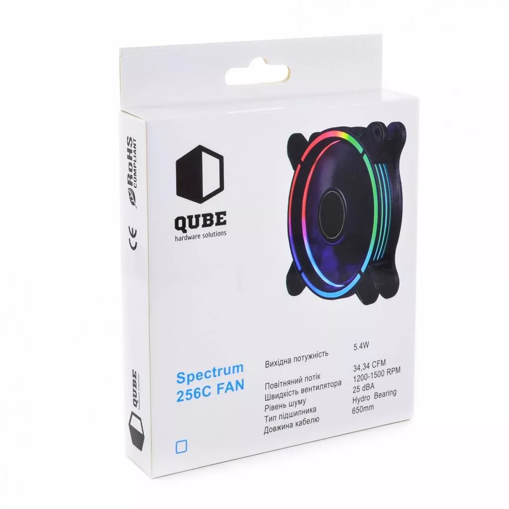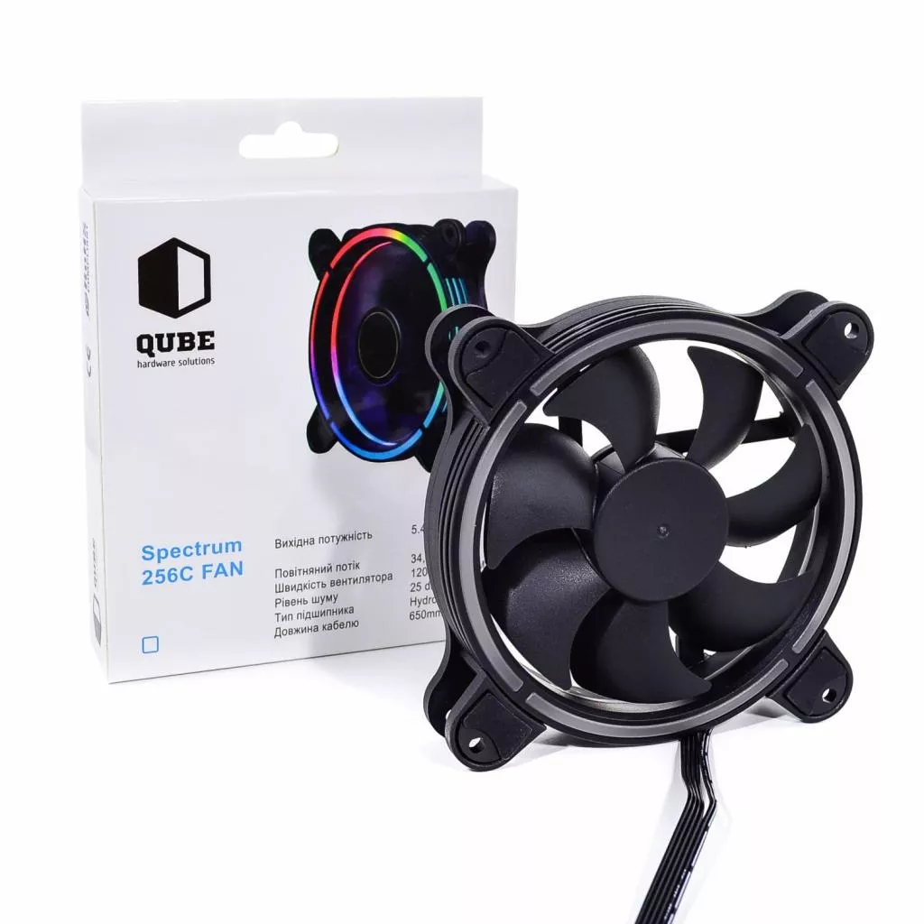 Ультратихий вентилятор QUBE Rainbow Spectrum 256C 120 мм 18 LED с многоцветной светодиодной подсветкой (256 вариантов цветового оформления) оснащён восемнадцатью RGB-светодиодами и дает возможность реализовать задуманные идеи визуальных эффектов (необходим отдельный блок управления).