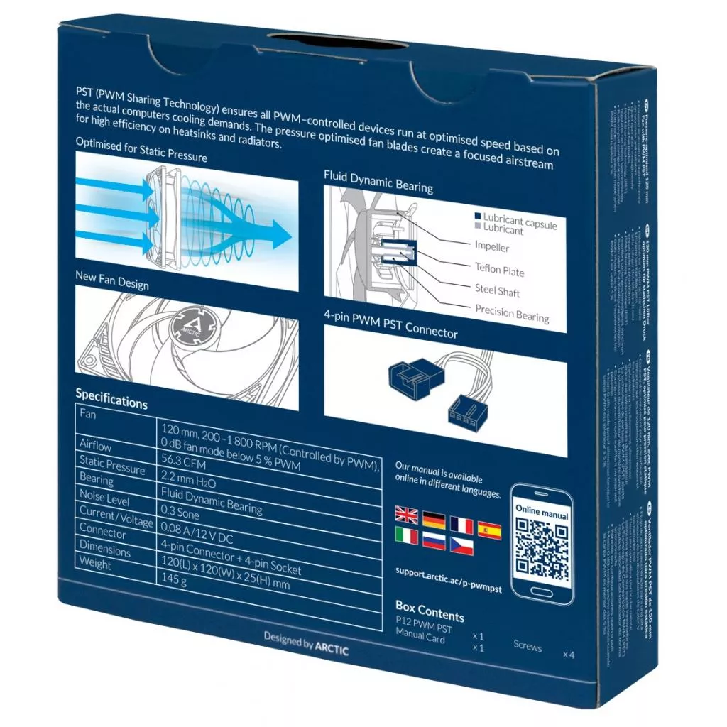 Благодаря широкому диапазону регулирования и технологии PWM Sharing (PST), скорость вентилятора P12 PWM PST можно контролировать синхронно со всеми другими вентиляторами вместе. Это сводит шум к минимуму и гарантирует максимальную эффективность охлаждения при необходимости.