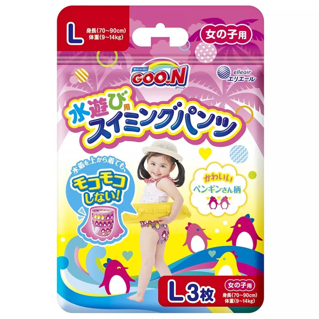 Новая коллекция трусиков-подгузников для плавания GOO.N ещё лучше подходит для купания в бассейне или открытых водоёмах. Трусики стали ещё тоньше — и в сухом, и в мокром виде, а также имеют усовершенствованную форму, лучше сидят по фигуре, не комкаются и не сползают, поэтому будут незаметны под купальным костюмом.