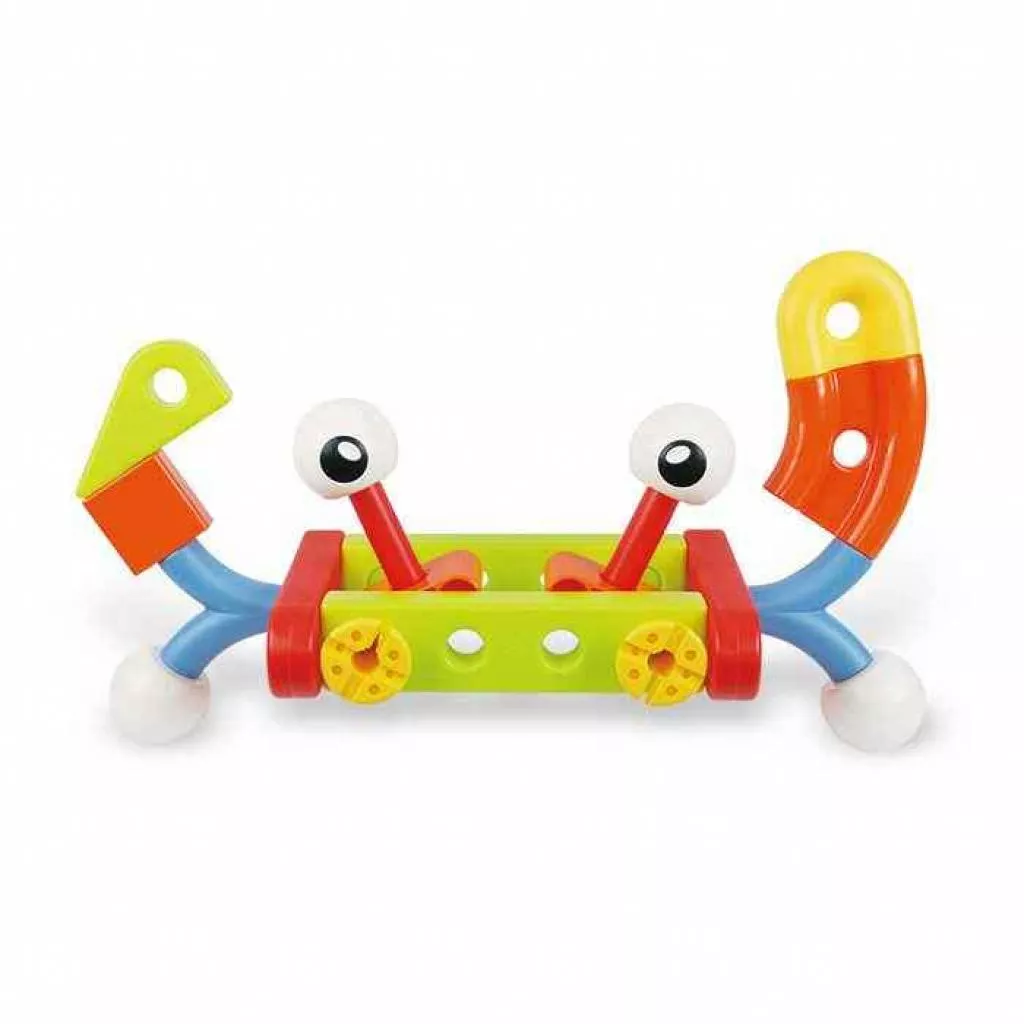 Конструктор IQCamp Сумасшедшие создания (1102) - это яркий, увлекательный конструктор от которого Ваш ребенок будет в восторге. После первого года ребенку необходимы новые игрушки, которые собираются и разбираются. Детский конструктор IQCamp поможет ребенку познакомиться с миром окружающих его животных и начать играть в ролевые игры, а большие глаза придадут игрушкам еще больше выразительности. Все модели получаются крупными, поэтому с каждой из них интересно играть. При этом ребенок учится распознавать цвета и формы, развивает ассоциативное мышление, поскольку все игрушки имеют аналоги в реальном мире: краба, лягушку, улитку, петуха.