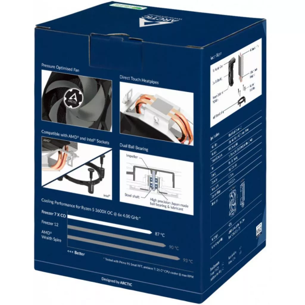 Arctic Freezer 7 X CO — это компактный процессорный кулер с одним 92-мм вентилятором. Он совместим с общими разъемами Intel и AMD. Благодаря двойному шариковому подшипнику он оптимизирован для непрерывной работы. Freezer 7 X CO имеет улучшенную конструкцию радиатора и переработанную конструкцию тепловых трубок. В сочетании с вентилятором, который оптимизирован для высокого статического давления, Arctic удалось существенно улучшить эффективность охлаждения Freezer 7 X CO.