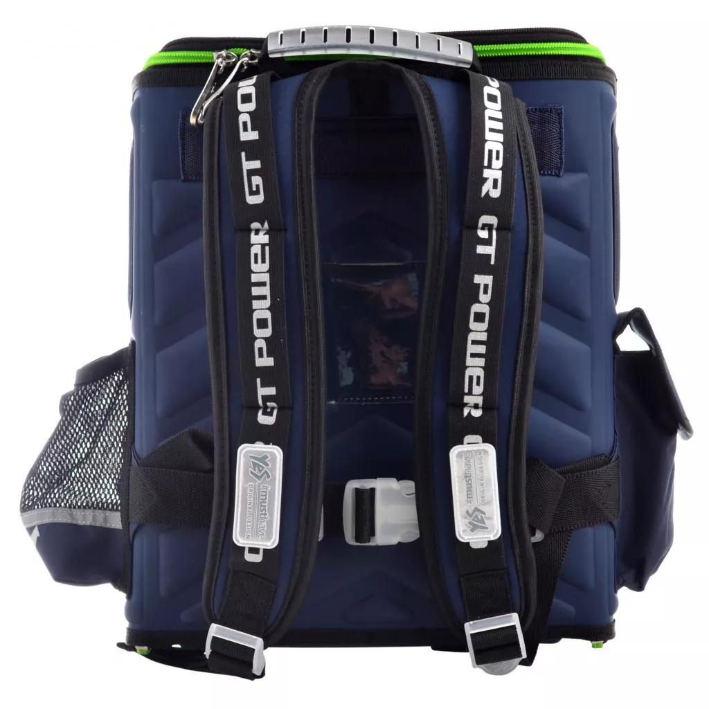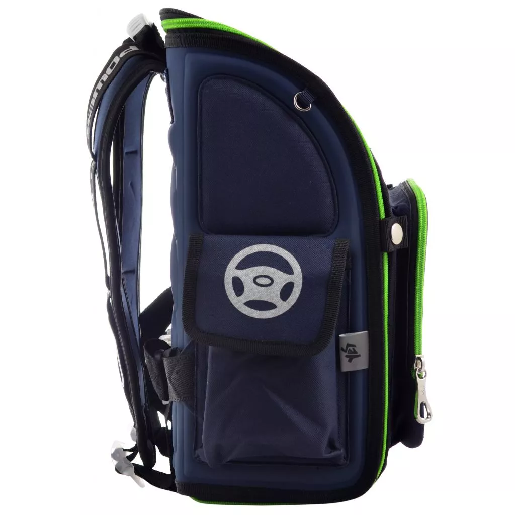 Каркасный школьный рюкзак с пластиковыми элементами, обеспечивающими жесткость спины и боковин. В основном отделении - подвижные разделители с эластичной лентой, прозрачный карман для расписания и карточка для заполнения личных данных. На передней панели ранца - объемный карман, боковые карманы для бутылочки с водой и других мелочей. Широкие, удобные лямки, регулируемые, S-образной формы, светоотражатели - 4 шт.Основной материал: полиэстер.