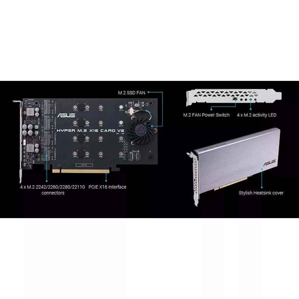 Плата ASUS Hyper M.2 x16 V2 имеет четыре слота M.2, чтобы вы могли расширить свою систему за счет высокопроизводительного хранилища SSD. Предназначенная для накопителей NVMe последнего поколения, карта оснащен и укомплектована модернизированным источником питания, обеспечивающим до 14 Вт мощности на каждый накопитель, а также большим радиатором и активным вентилятором, которые обеспечивают охлаждение накопителей и оптимальную производительность.