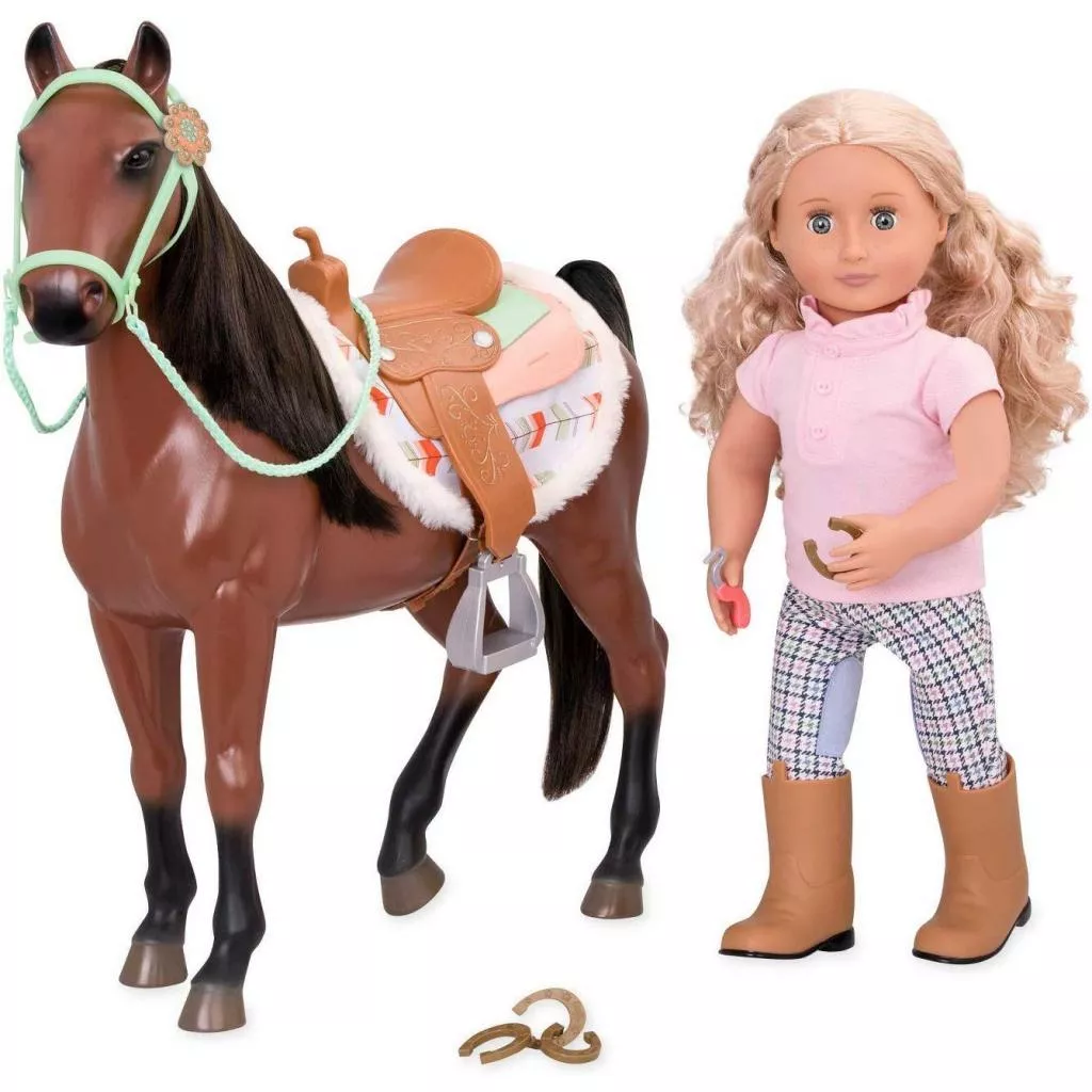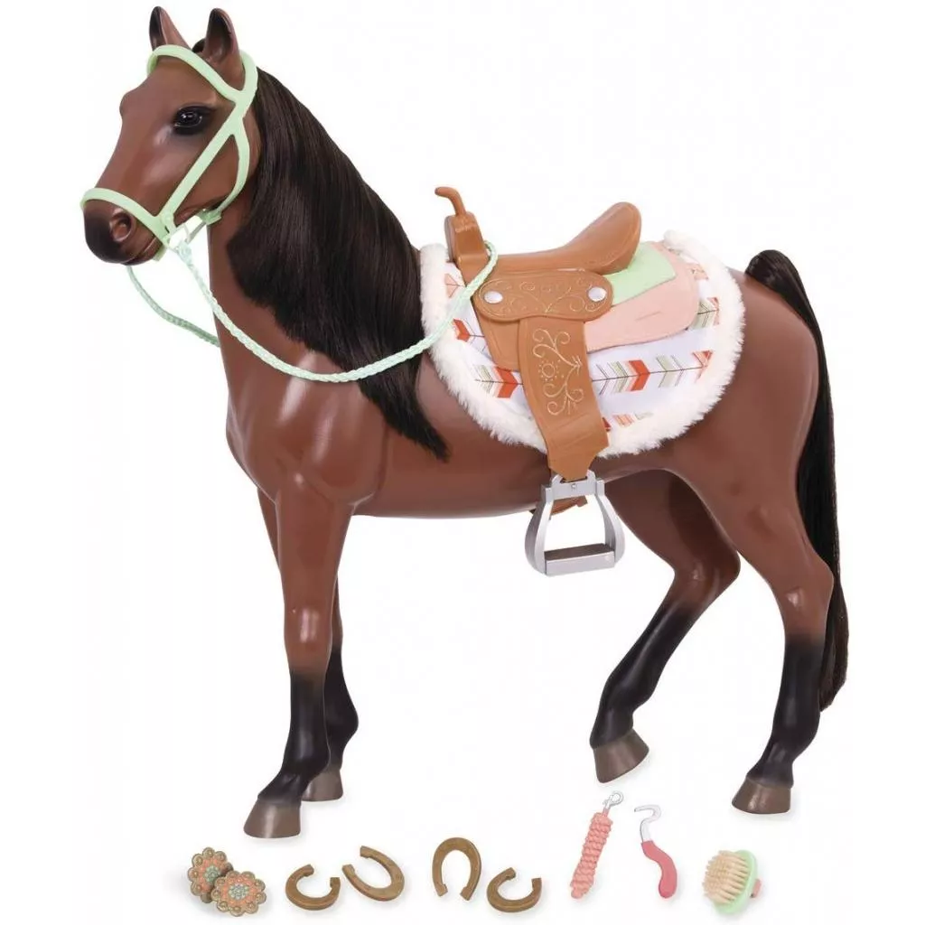 Конь Кавалло с аксессуарами от Our Generation подходит для всех любителей лошадей. В комплект входят 13 предметов. Высота игрушки 50 см. Рекомендованный возраст от 3 лет.
