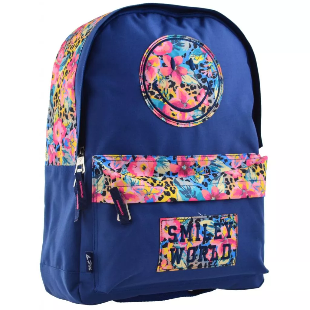 Яркий и стильный молодежный рюкзак "Smiley world" на одно отделение. Основной материал: водоотталкивающий полиэстер. Внутри карман для мобильного телефона. Объемный карман на передней панели.