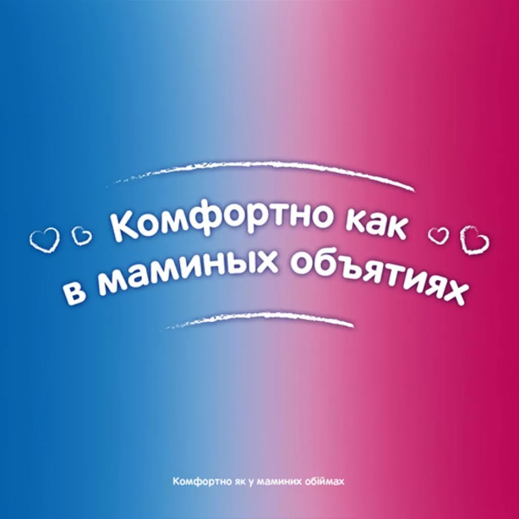 • DryTouch –внутренний слой, который впитывает влагу за секунды и надежно удерживает ее внутри, обеспечивая малышу сухость днем и ночью.