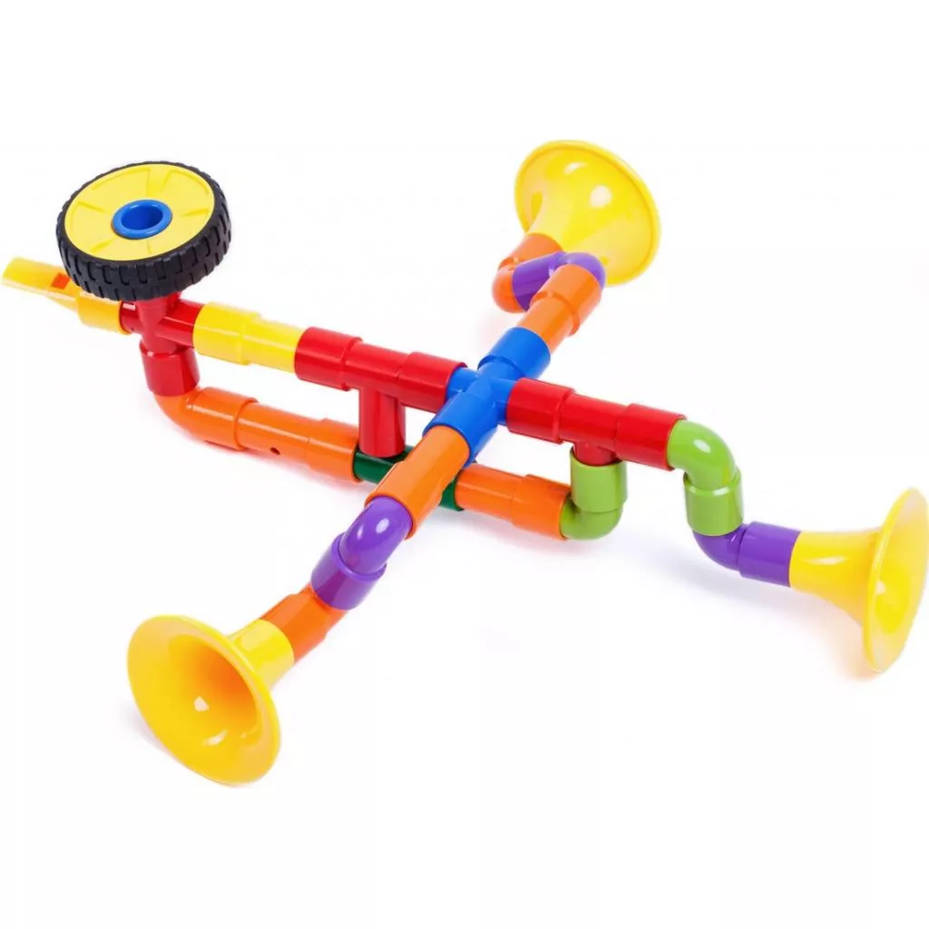Конструктор может использоваться в воде и быть настоящим водным трубопроводом. Из этих же деталей можно собрать музыкальный инструмент и играть как на настоящей дудочке.