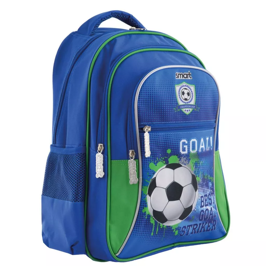 Рюкзак школьный ZZ-03 "Goal" на два больших отдела. Дополнительно имеет передний карман и два боковых. Светоотражающие элементы присутствуют на поверхности, обеспечивая безопасность. Материал: полиэстер, водоотталкивающий