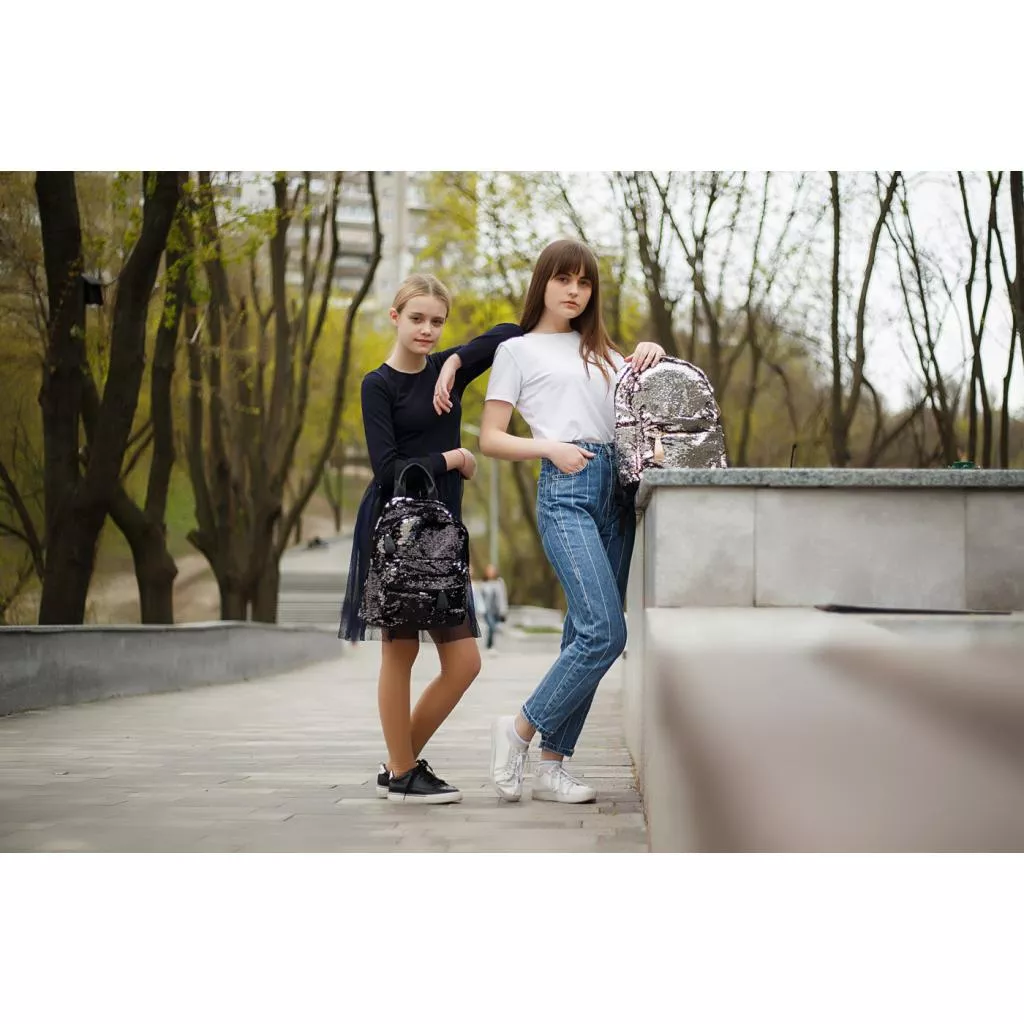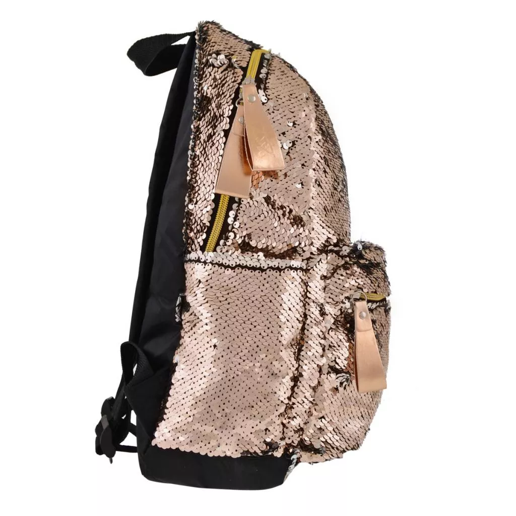 Стильный рюкзак с пайетками – украшение каждого дня современной девушки! Тренд, уверенно завоевывающий сердца девушек по всему миру каждый день – теперь еще ярче, чем когда-либо, благодаря Yes. Пайетки создают эффект двухсторонней поверхности и в зависимости от освещения сияют гранями разных оттенков. Одно основное отделение на молнии вмещает необходимые на прогулке вещи. Ручка на верхней панели дает возможность носить рюкзак не только на плечах, но и в руке.