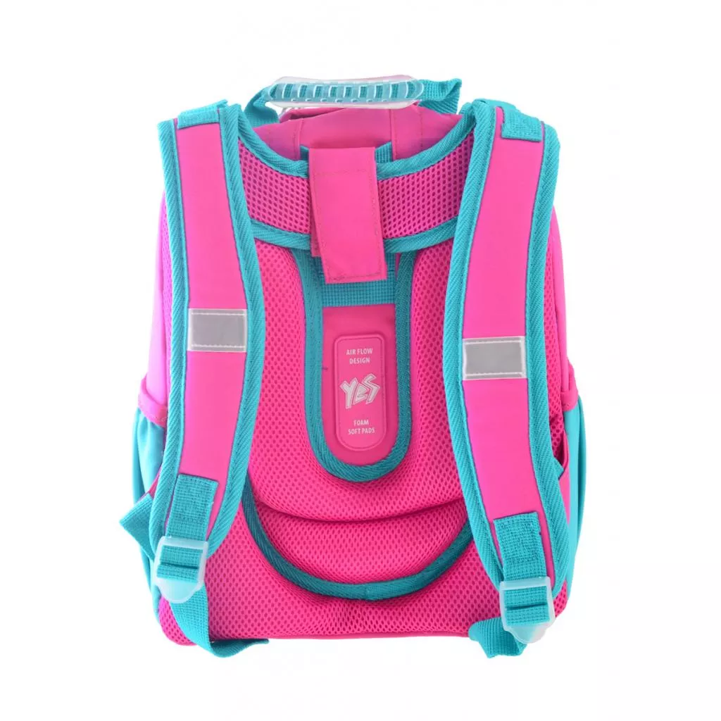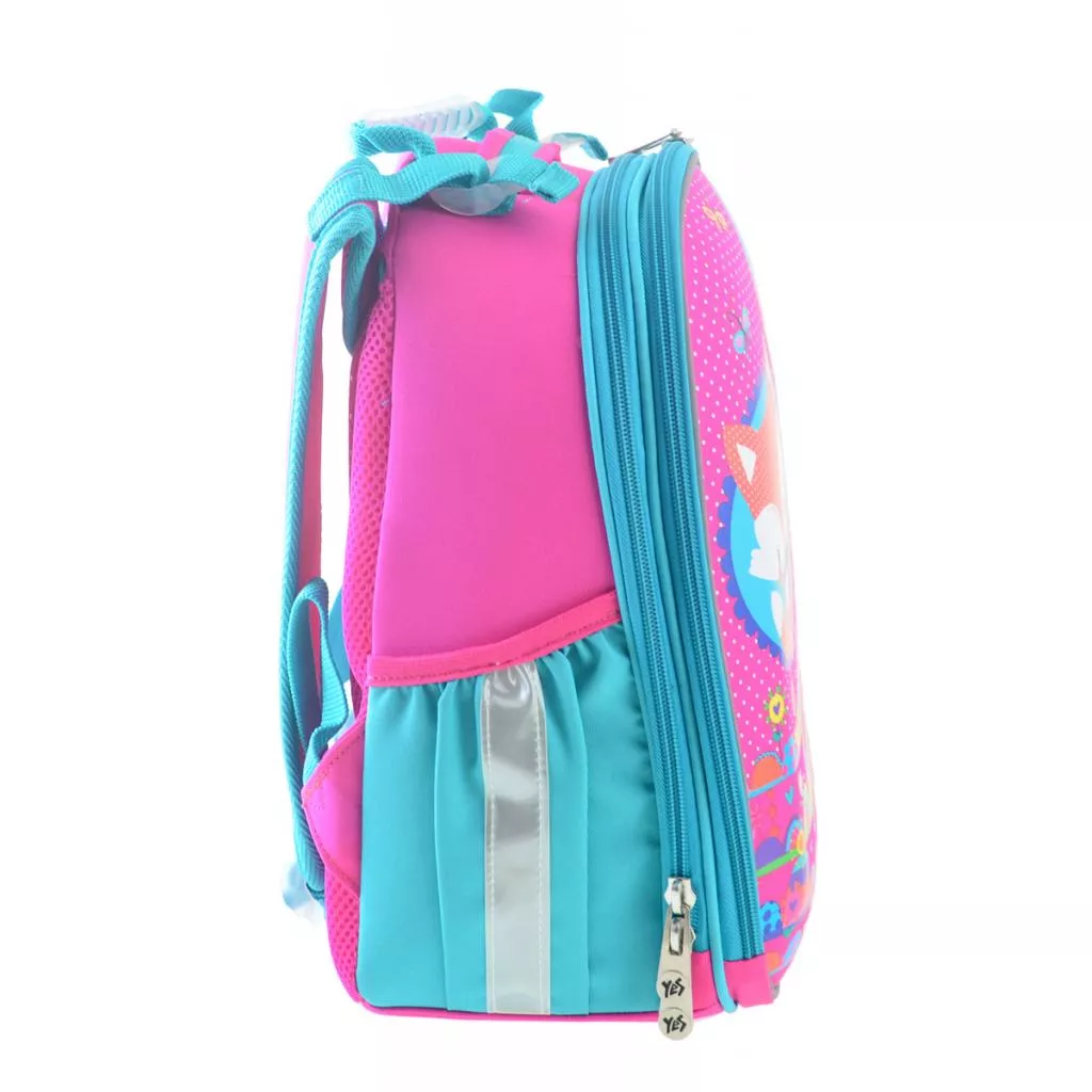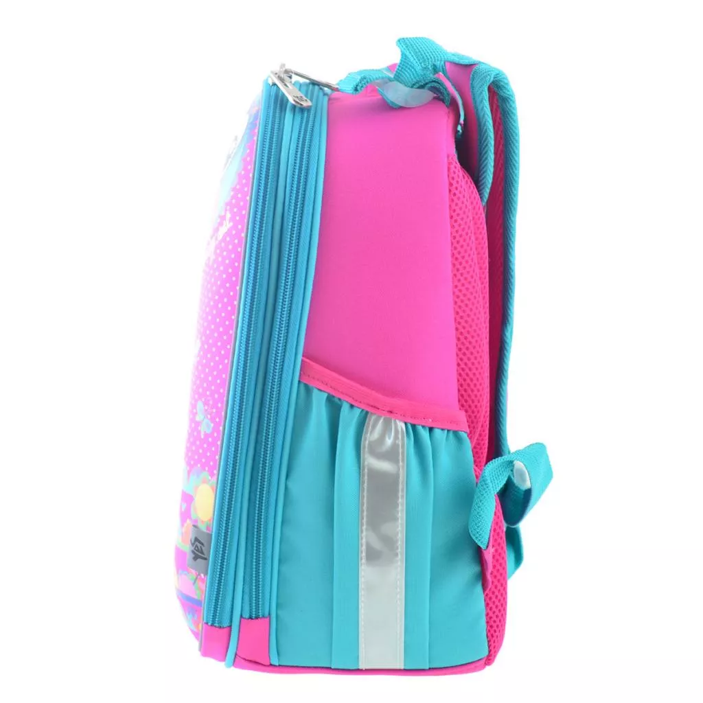 Рюкзак предназначен для младших школьников, имеет два основных отдела. Внутри - сетчатый карман, разделитель для тетрадей, а также кармашек-кошелек. Вся поверхность рюкзака имеет жесткие вставки, передняя EVA-панель защищает его от повреждений, дно усилено плотной материей, 1 светоотражающий элемент. Основной материал: полиэстер, водонепроницаемый. габаритные размеры: 26х35х16 см. Объем: 14 л. Вес: 900 г.