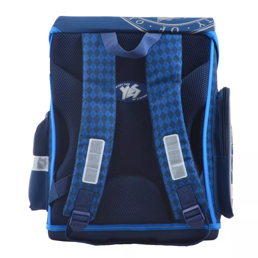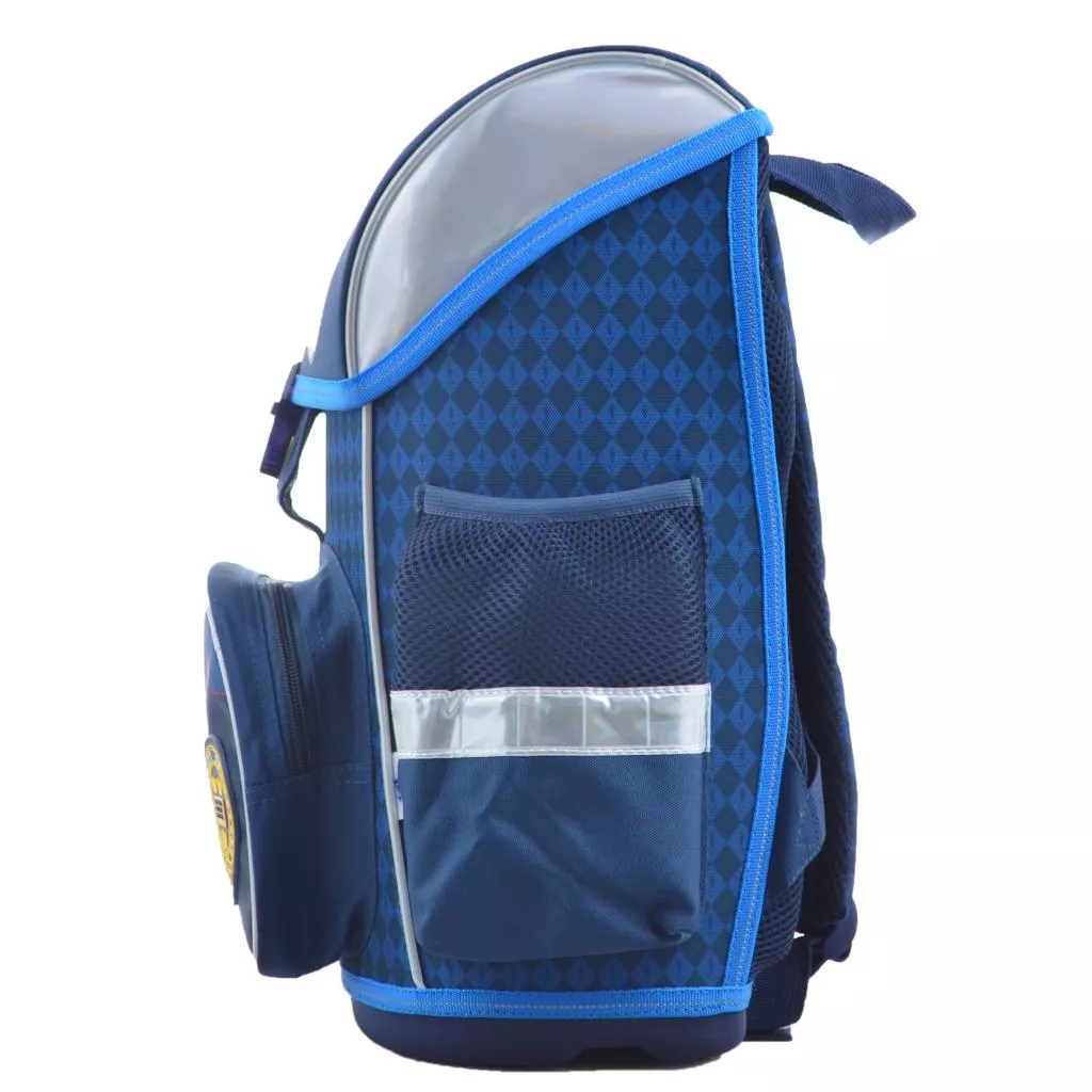 Каркасный рюкзак для учеников младших классов. Имеет одно основное отделение и два боковых кармана - для бутылки с водой и других личных вещей ребенка. Дополнительно имеется секция для лэптопа и маленький кошелек. Ранец удобно держать в руке, легко подвешивать на крючок. Дно уплотненное плотной материей и специальной вставкой. 16 светоотражающих элементов. Основной материал: полиэстер с водонепроницаемой поверхностью. Размер: M. габаритные размеры: 30х40х16 см. Объем: 19 л. Вес: 1100 г.