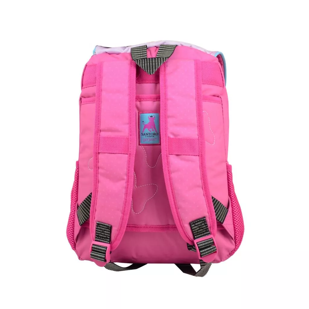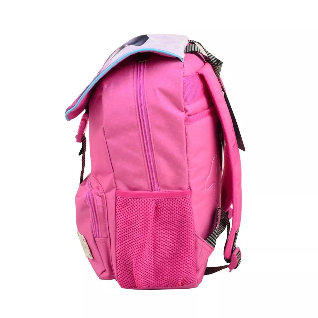Данный рюкзак отличается своей вместительностью. Одно основное отделение дает возможность удачно расположить все необходимые школьные принадлежности. Дополнительный карман на молнии на передней панели предназначен для других важных предметов. Два боковых кармана могут быть использованы для бутылки с водой и других необходимых мелочей. Дизайн рюкзака очень стильный, что непременно повлияет на повышение самооценки и настроения школьницы. Материал: полиэстер.