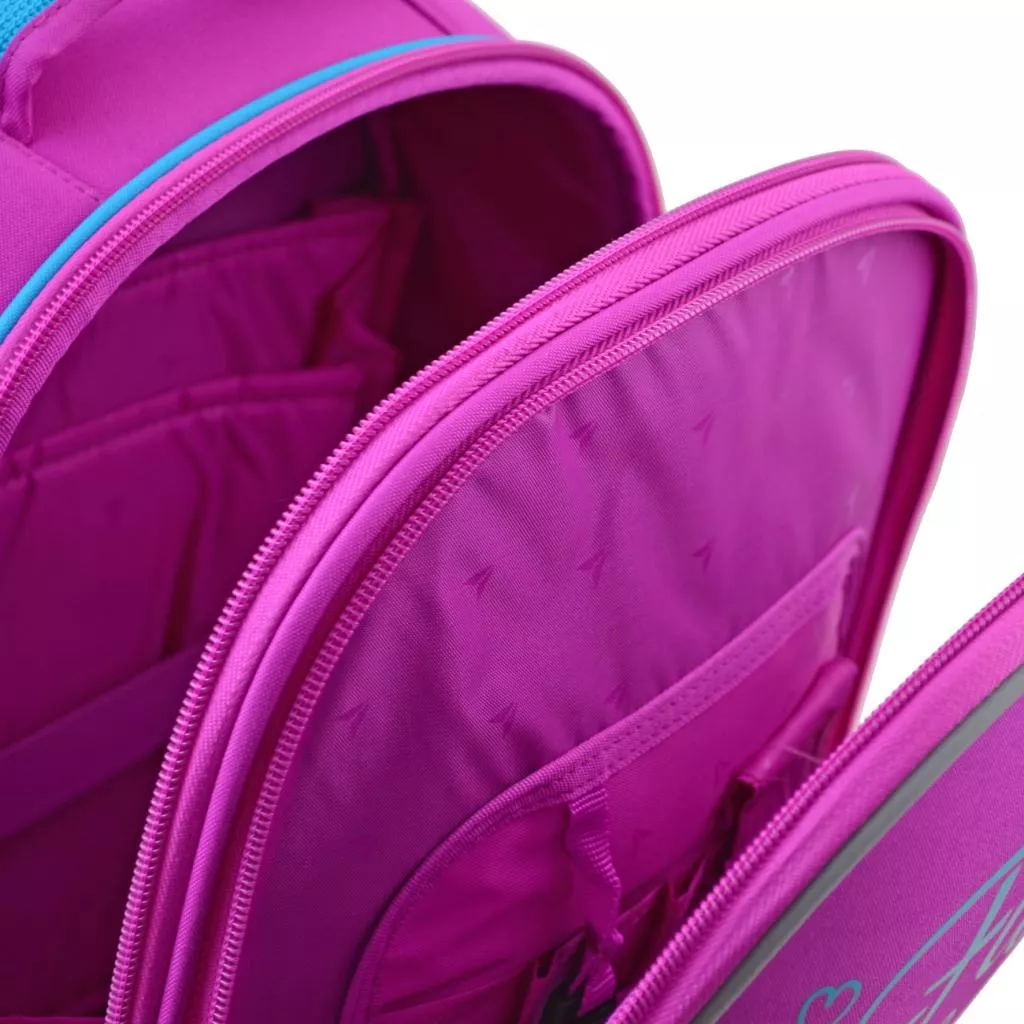 Плотный жесткокаркасный рюкзак на два отделения. Передняя панель выполнена в виде «панциря», который не деформируется при легком давлении, сохраняя форму даже при неравномерной загрузке рюкзака. «Панцирь» выполнен из плотного EVA-материала. Рюкзак повторяет форму позвоночника, препятствует его искривлению, способствует формированию правильной осанки. Уникальная система крепления лямок дает возможность выставить максимально и в полном объеме комфортную высоту по спине ребенка. Есть дополнительная фиксация лямок с помощью нагрудного ремня. 2 боковых кармана для бутылки с водой и других личных вещей. Наличие отделения для лэптопа, органайзера, кармашка для телефона. 6 светоотражающих элементов. Усиленное дно с защитными накладками. Компактный размер рюкзака идеально подходит даже для самых маленьких деток – он не давит на плечи и не тяжелый для ребенка даже в наполненном состоянии.
