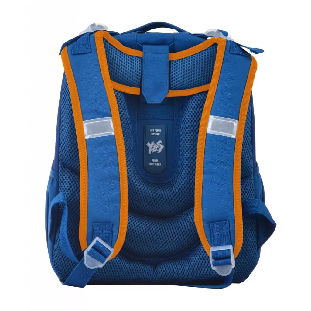 Рюкзак предназначен для младших школьников, имеет два основных отдела. Внутри - сетчатый карман, разделитель для тетрадей, а также кармашек-кошелек. Вся поверхность рюкзака имеет жесткие вставки, передняя EVA-панель защищает его от повреждений, дно усиленное плотной материей, 1 светоотражающий элемент. Основной материал: полиэстер, водонепроницаемый. габаритные размеры: 26х35х16 см. Объем: 14 л. Вес: 900 г.