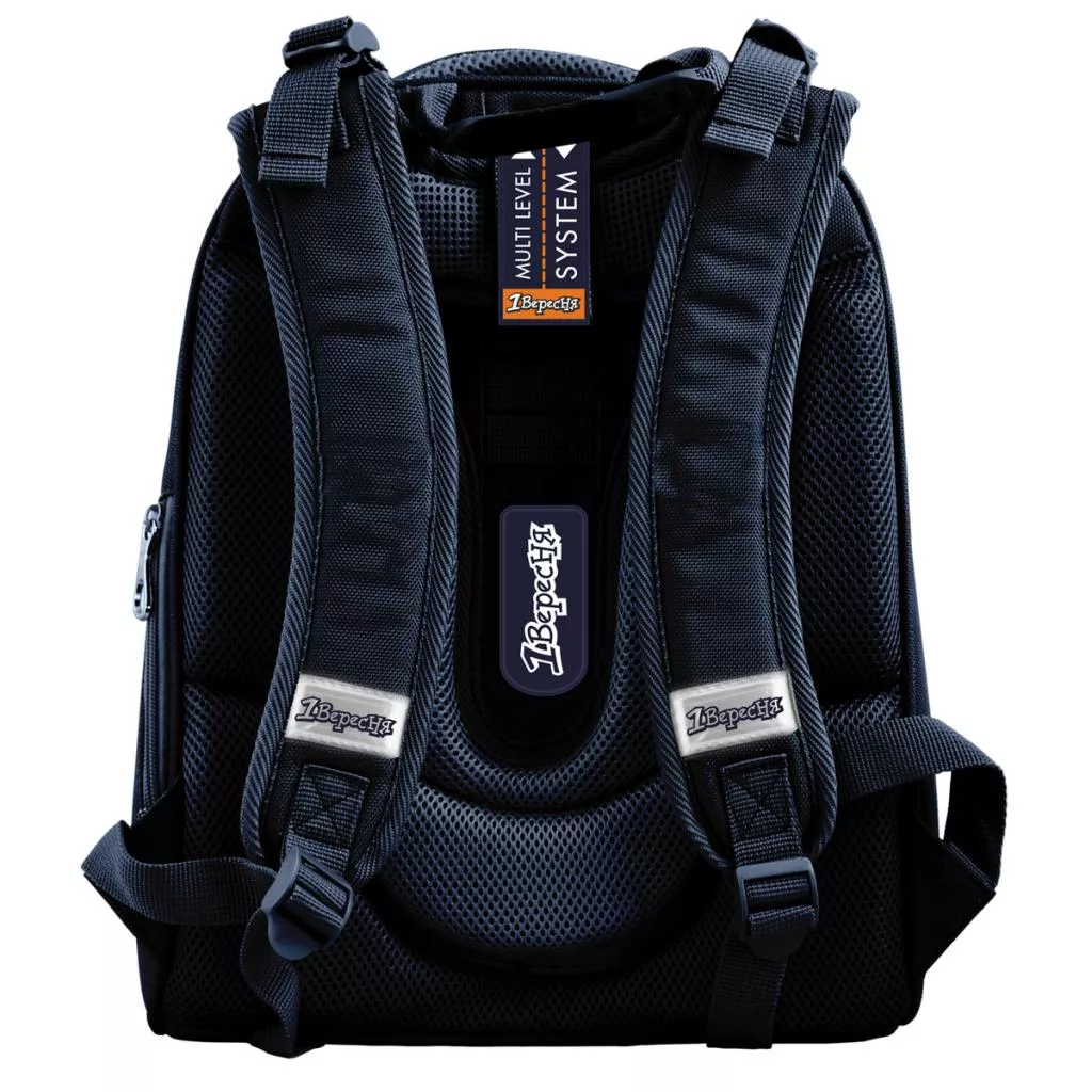 Плотный жесткокаркасный рюкзак на два отделения. Передняя панель выполнена из плотного EVA-материала, который не деформируется при легком надавливании, сохраняя форму даже при неравномерной загрузке рюкзака. Нанесена цифровая печать. Рельефная ортопедическая спинка с каналами для циркуляции воздуха препятствует искривлению позвоночника. В основном, самом большом, отделении расположены жесткие перемычки-вставки для комфортного размещения тетрадей или учебников. В переднем отделении предусмотрен органайзер с карманом для мобильного телефона, отделениями для ручек и карандашей, подвеской для ключей.Регулируемые мягкие лямки дают возможность выставить максимально и в полном объеме комфортную высоту по спине ребенка. Есть дополнительная фиксация лямок с помощью нагрудного ремня. Два боковых кармана для бутылки с водой и других личных вещей. Усиленное дно с защитными накладками. Удобная ручка для переноски. Светоотражающие элементы обеспечат видимость ребенка в темное время суток. Компактный размер рюкзака идеально подходит даже для самых маленьких деток – он не давит на плечи и не тяжелый для ребенка даже в наполненном состоянии.
