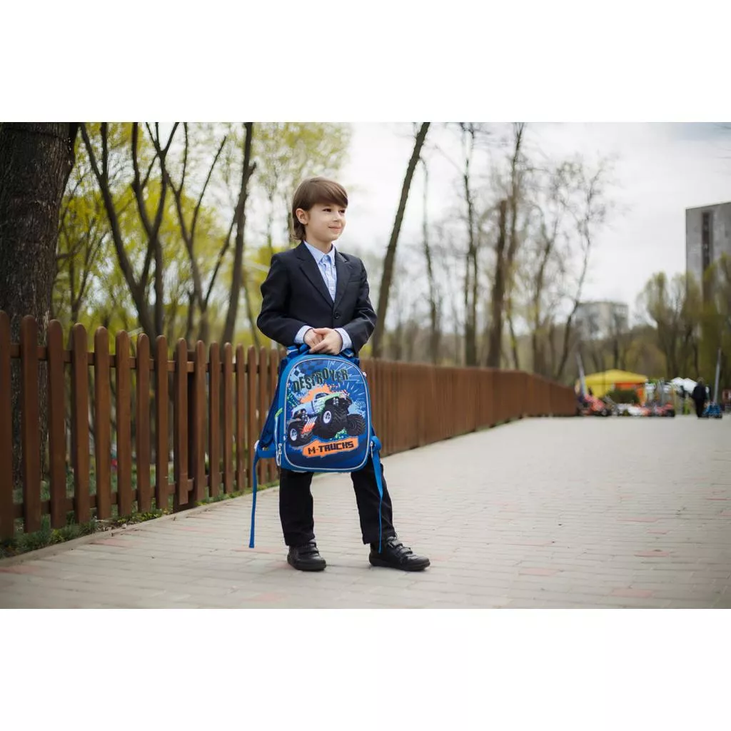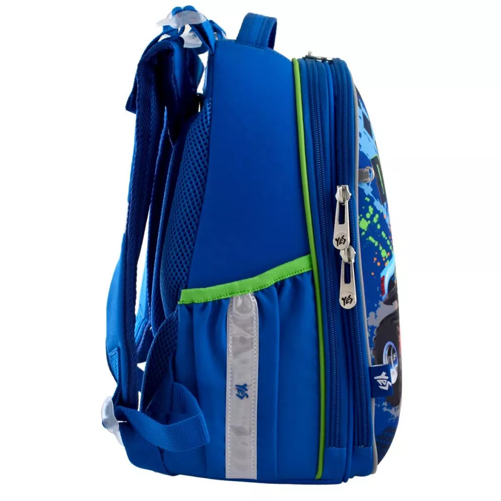 Плотный жесткокаркасный рюкзак на два отделения. Передняя панель выполнена в виде «панциря», который не деформируется при легком давлении, сохраняя форму даже при неравномерной загрузке рюкзака. «Панцирь» выполнен из плотного EVA-материала. Рюкзак повторяет форму позвоночника, препятствует его искривлению, способствует формированию правильной осанки. Уникальная система крепления лямок дает возможность выставить максимально и в полном объеме комфортную высоту по спине ребенка. Есть дополнительная фиксация лямок с помощью нагрудного ремня. 2 боковых кармана для бутылки с водой и других личных вещей. Наличие отделения для лэптопа, органайзера, кармашка для телефона. 6 светоотражающих элементов. Усиленное дно с защитными накладками. Компактный размер рюкзака идеально подходит даже для самых маленьких деток – он не давит на плечи и не тяжелый для ребенка даже в наполненном состоянии.