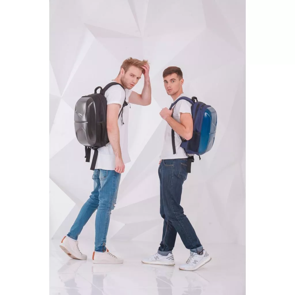 Стильный и современный рюкзак Town Shield, которому не страшны сильные нагрузки. Переднюю панель защищает прочный и надежный и стабильный пластик, а заднюю - вентилируемая сетка AirMesh. Внутри основного отдела есть удобный органайзер, отделение для лэптопа и телефона. Материал: полиэстер и пластик. габаритные размеры: 30х45х15 см. Объем: 19 л. Вес: 950 г.