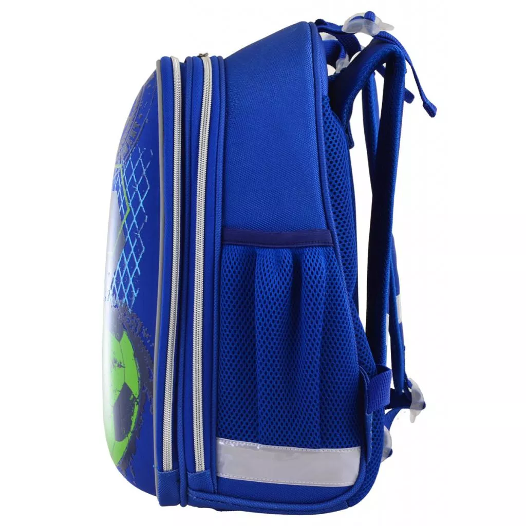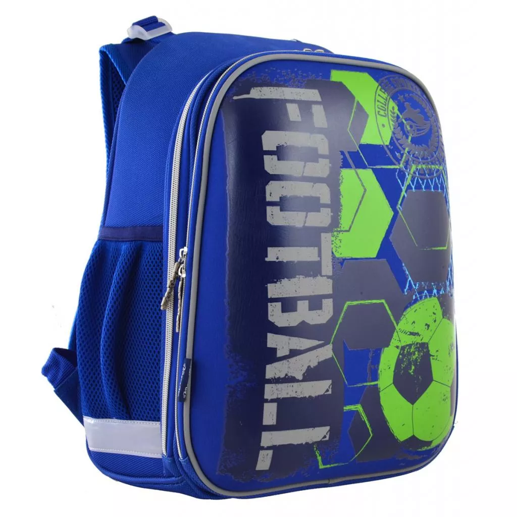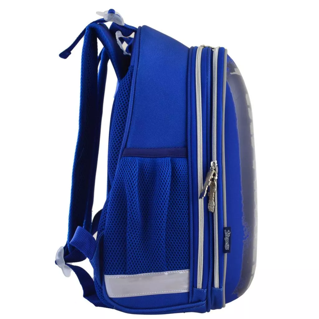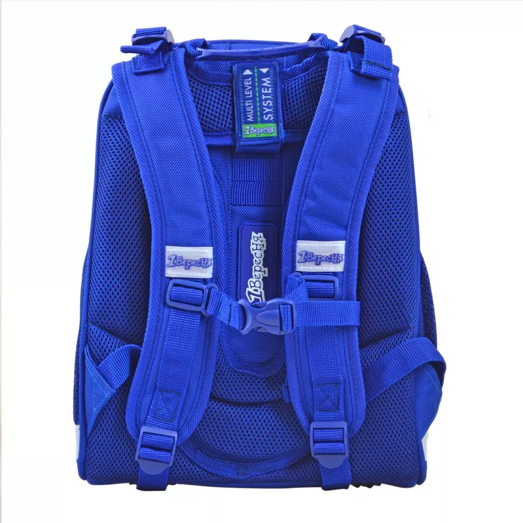 Плотный жесткокаркасный рюкзак на два отделения. Передняя панель выполнена в виде «панциря», который не деформируется при легком давлении, сохраняя форму даже при неравномерной загрузке рюкзака. «Панцирь» выполнен из плотного EVA-материала. Рюкзак повторяет форму позвоночника, препятствует его искривлению, способствует формированию правильной осанки. Уникальная система крепления лямок дает возможность выставить максимально и в полном объеме комфортную высоту по спине ребенка. Есть дополнительная фиксация лямок с помощью нагрудного ремня. 2 боковых кармана с сеточкой для бутылки с водой и других личных вещей. Наличие отделения для лэптопа, органайзера, телефона. 6 светоотражающих элементов. Усиленное дно с защитными накладками.