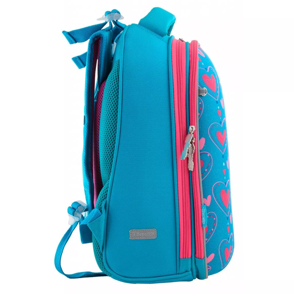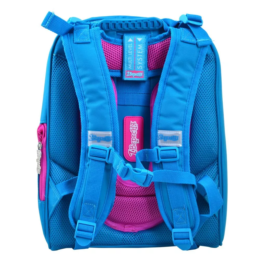 Плотный жесткокаркасный рюкзак на два отделения. Передняя панель выполнена в виде «панциря», который не деформируется при легком давлении, сохраняя форму даже при неравномерной загрузке рюкзака. «Панцирь» выполнен из плотного EVA-материала. Рюкзак повторяет форму позвоночника, препятствует его искривлению, способствует формированию правильной осанки. Уникальная система крепления лямок дает возможность выставить максимально и в полном объеме комфортную высоту по спине ребенка. Есть дополнительная фиксация лямок с помощью нагрудного ремня. 1 потайной карман с сеточкой для бутылки с водой и других личных вещей. Наличие отделения для лэптопа, органайзера, телефона. 6 светоотражающих элементов. Усиленное дно с защитными ножками.
