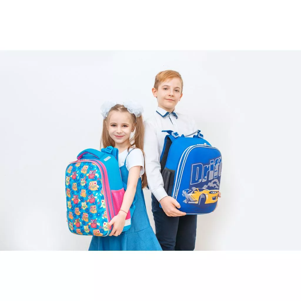 Плотный жестко-каркасный рюкзак на два отделения. Имеет жесткую спинку, которая повторяет форму позвоночника, препятствует его искривлению, способствует формированию правильной осанки. Уникальная система крепления лямок дает возможность выставить максимально и в полном объеме комфортную высоту по спине ребенка. 2 потайных кармана с сеточкой для бутылки с водой и других личных вещей. Наличие отделения для лэптопа, органайзера, телефона. 6 светоотражающих элементов. Усиленное дно с защитными ножками. габаритные размеры: 29х38х15 см. Объем: 16 л. Вес: 1150 г.