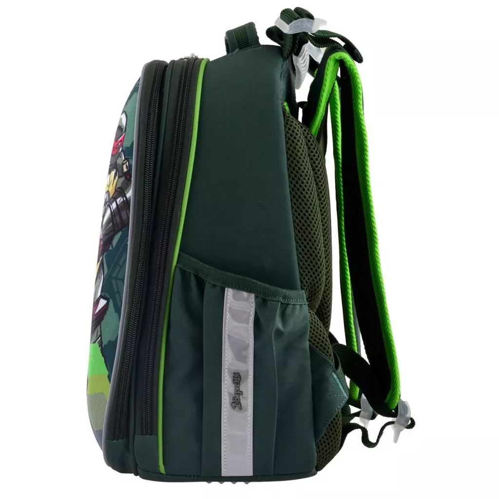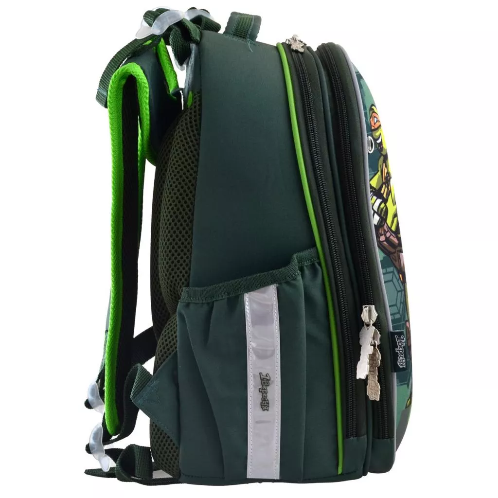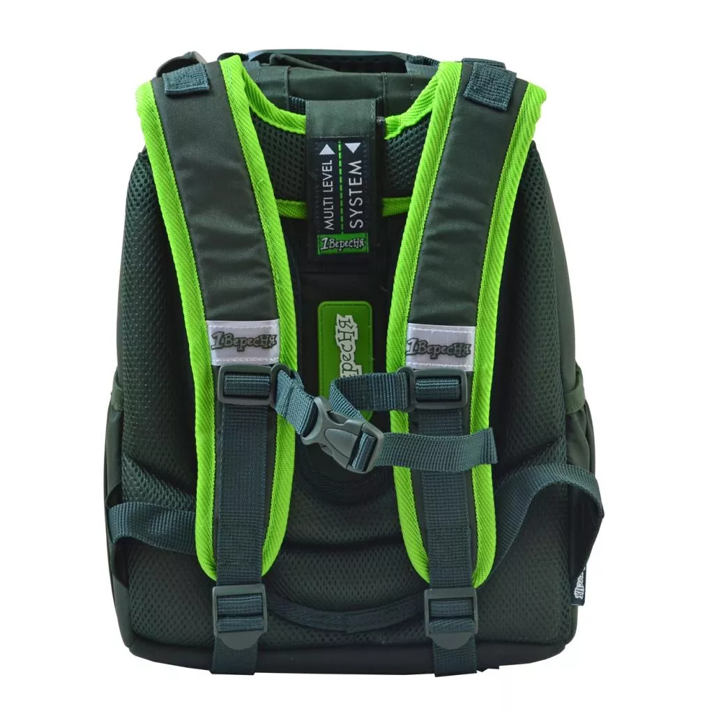 Плотный жесткокаркасный рюкзак на два отделения. Передняя панель выполнена в виде «панциря», который не деформируется при легком давлении, сохраняя форму даже при неравномерной загрузке рюкзака. «Панцирь» выполнен из плотного EVA-материала. Рюкзак повторяет форму позвоночника, препятствует его искривлению, способствует формированию правильной осанки. Уникальная система крепления лямок дает возможность выставить максимально и в полном объеме комфортную высоту по спине ребенка. Есть дополнительная фиксация лямок с помощью нагрудного ремня. 2 боковых кармана для бутылки с водой и других личных вещей. Наличие отделения для лэптопа, органайзера, кармашка для телефона. 6 светоотражающих элементов. Усиленное дно с защитными накладками. Компактный размер рюкзака идеально подходит даже для самых маленьких деток – он не давит на плечи и не тяжелый для ребенка даже в наполненном состоянии.