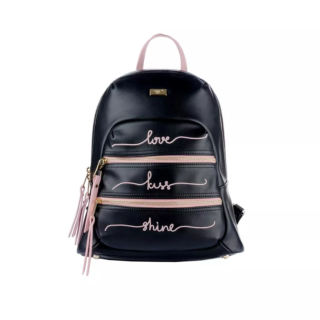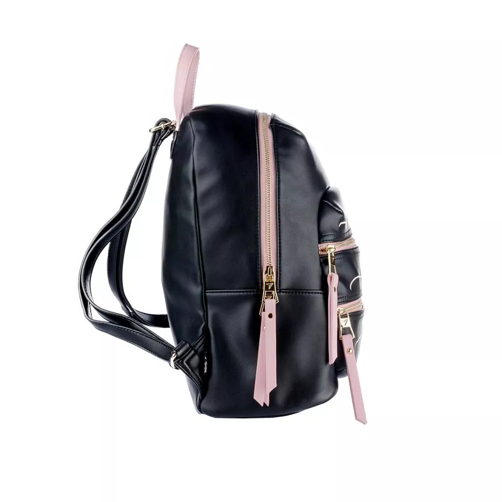 Элегантный рюкзак на одно отделение. Внутри есть карман на молнии и карман для телефона. Два фронтальных кармана на молнии. Ручка-петля для переноски. Материал: полиэстер. Размер: 35 x 30 x 15 см.