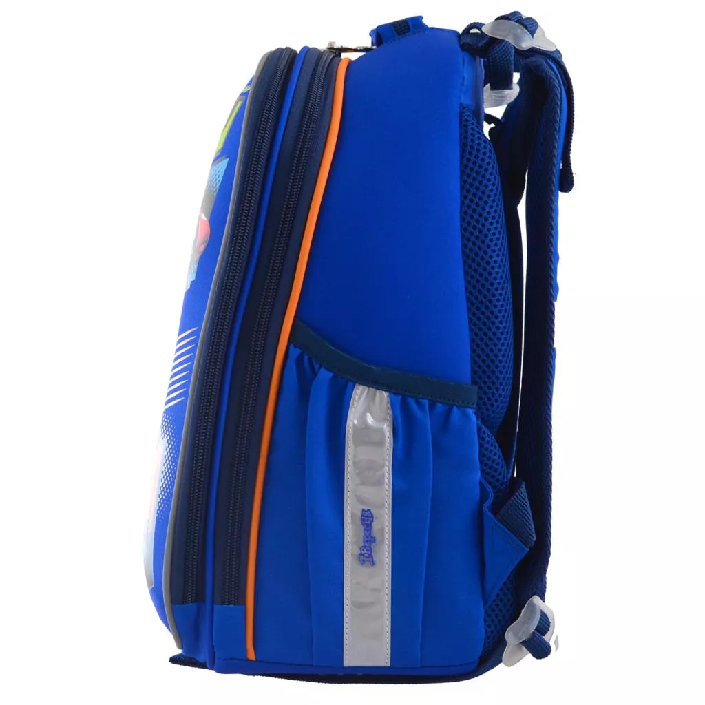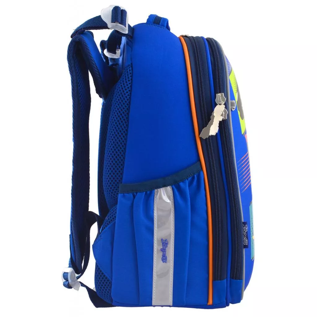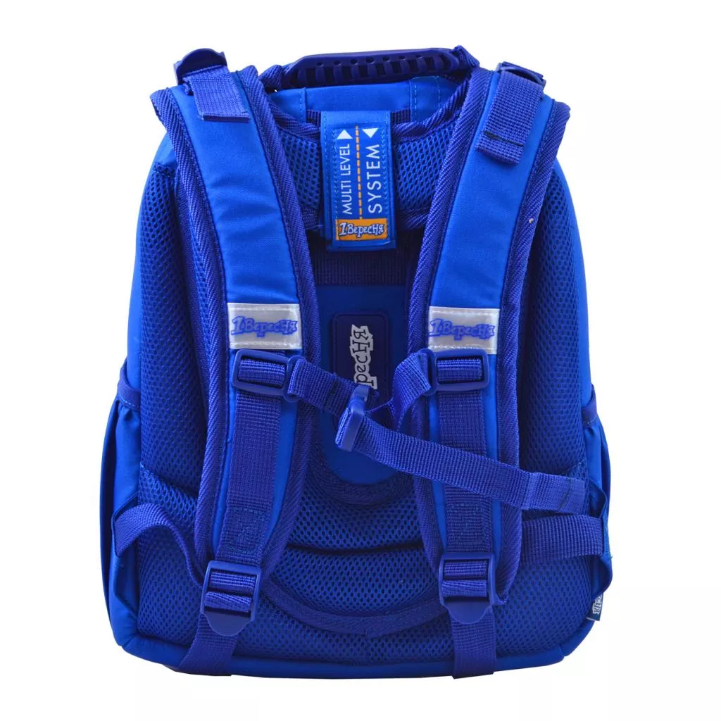 Плотный жесткокаркасный рюкзак на два отделения. Передняя панель выполнена в виде «панциря», который не деформируется при легком давлении, сохраняя форму даже при неравномерной загрузке рюкзака. «Панцирь» выполнен из плотного EVA-материала. Рюкзак повторяет форму позвоночника, препятствует его искривлению, способствует формированию правильной осанки. Уникальная система крепления лямок дает возможность выставить максимально и в полном объеме комфортную высоту по спине ребенка. Есть дополнительная фиксация лямок с помощью нагрудного ремня. 2 боковых кармана для бутылки с водой и других личных вещей. Наличие отделения для лэптопа, органайзера, кармашка для телефона. 6 светоотражающих элементов. Усиленное дно с защитными накладками. Компактный размер рюкзака идеально подходит даже для самых маленьких деток – он не давит на плечи и не тяжелый для ребенка даже в наполненном состоянии