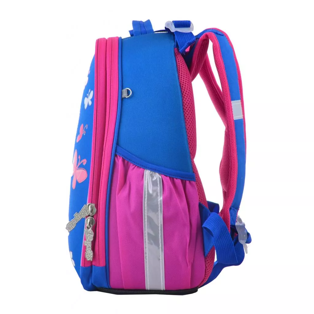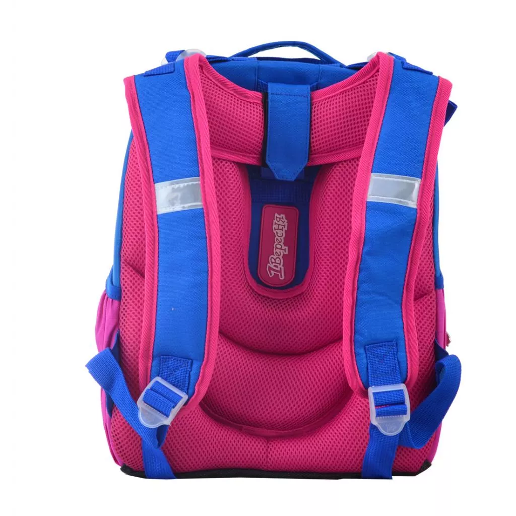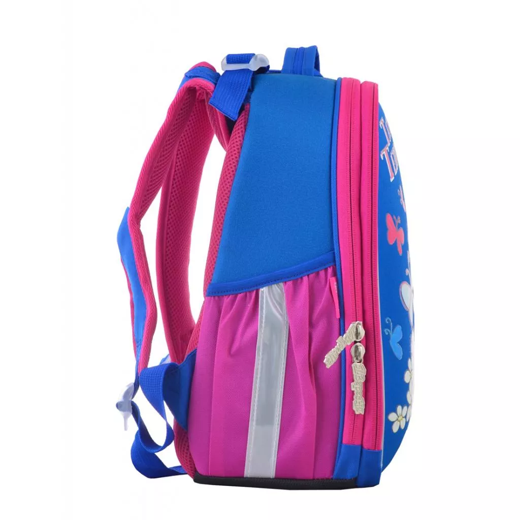 Рюкзак предназначен для младших школьников, имеет два основных отдела. Внутри - сетчатый карман, разделитель для тетрадей, а также кармашек-кошелек. Вся поверхность рюкзака имеет жесткие вставки, передняя EVA-панель защищает его от повреждений, имеется 1 светоотражающий элемент, дно усилено плотной материей. Основной материал: полиэстер.габаритные размеры: 25х34х16 см. Объем: 14 л. Вес: 900 г.