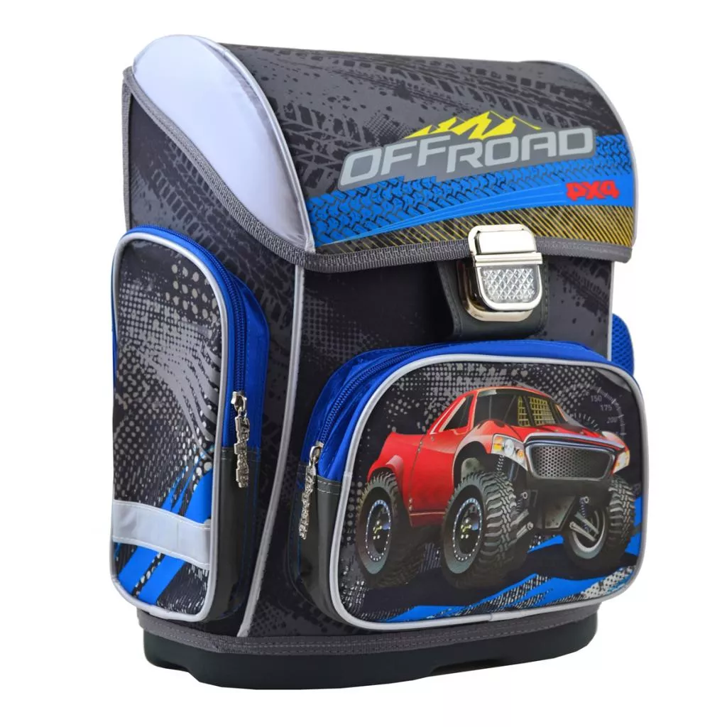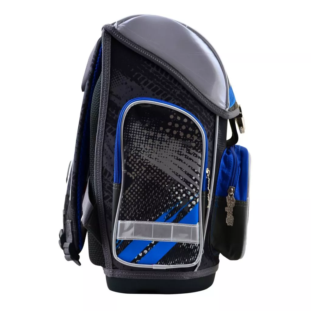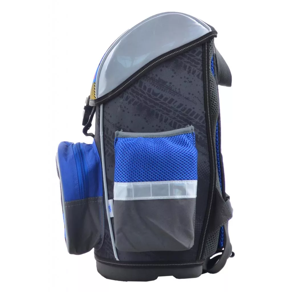 Каркасный рюкзак для учеников младших классов. Имеет одно основное отделение для принадлежностей и два боковых кармана - для мелочи и бутылки с водой. Дополнительно имеется секция для лэптопа и маленький кошелек. Ранец удобно держать в руке, легко подвешивать на крючок. Дно уплотнено плотной материей и специальной вставкой. Дополнительно: водонепроницаемая поверхность, 16 светоотражающих элементов. Основной материал: полиэстер. габаритные размеры: 30х40х16 см. Объем: 19 л. Вес: 1100 г.