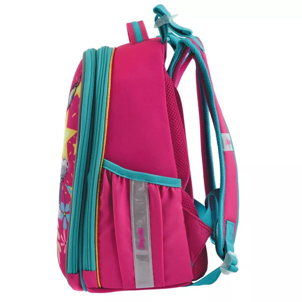Плотный жесткокаркасный рюкзак на два отделения. Передняя панель выполнена в виде «панциря», который не деформируется при легком давлении, сохраняя форму даже при неравномерной загрузке рюкзака. «Панцирь» выполнен из плотного EVA-материала. Рюкзак повторяет форму позвоночника, препятствует его искривлению, способствует формированию правильной осанки. Уникальная система крепления лямок дает возможность выставить максимально и в полном объеме комфортную высоту по спине ребенка. Есть дополнительная фиксация лямок с помощью нагрудного ремня. 2 боковых кармана для бутылки с водой и других личных вещей. Наличие отделения для лэптопа, органайзера, кармашка для телефона. 6 светоотражающих элементов. Усиленное дно с защитными накладками. Компактный размер рюкзака идеально подходит даже для самых маленьких деток – он не давит на плечи и не тяжелый для ребенка даже в наполненном состоянии.
