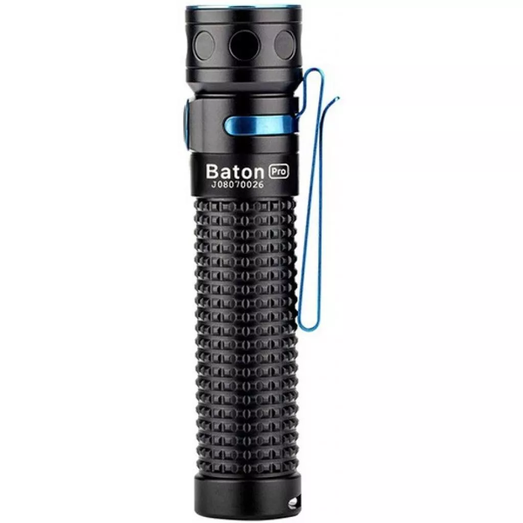 Фонарь Olight Baton Pro можно назвать "вершиной" серии (модельного ряда) Baton. Увеличенные показатели яркости, автономности, грамотно продуманные режимы работы, возможность подзарядки и много других решений качественно отличают его от предшественников. Ко всему прочему, Baton Pro отличается несколькими вариантами оформления, что даст возможность подобрать именно тот дизайн, который Вам по душе. Новая текстура накатки отличается цепкостью, что будет заметным преимуществом в плане эргономики. Фирменная TIR-оптика создает мягкий заливной луч света - идеальный вариант для EDC. В качестве элемента питания используется аккумулятор 18650 емкостью 3500 mA/h. Управление как и у большинства моделей Olight - максимально и в полном объеме простое и осуществляется одной кнопкой. На ней расположен индикатор разряженности аккумулятора, уведомляющего пользователя о состоянии батареи. Также присутствует режим блокировки, который исключает случайное включение фонаря. Корпус фонаря изготовлен из прочного авиационного алюминия с анодированной поверхностью максимально и в полном объемей (III) степени и отличается высокой износоустойчивостью. Высокая степень защиты IPX8, защитит фонарь от падения с высоты 1.5 метров и пребывания под водой до 2 метров.