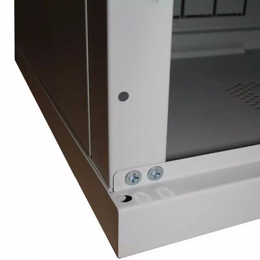 Серверный настенный шкаф 9U 450, разборный. В комплекте 2 рэка с регулируемой глубиной установки. Ввод кабеля сверху, снизу, сзади. Есть возможность установить до 2 120мм вентиляторов 25мм или 38мм толщины. Шкаф коммутационный 9U 450 крепится на стену с помощью анкеров или на монтажную планку.