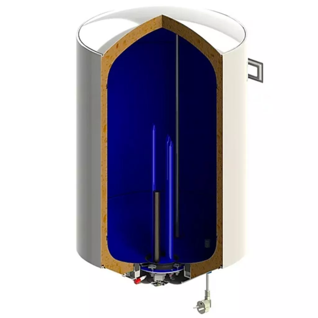 Изнутри резервуар, в котором происходит нагрев воды, покрыт титановой эмалью. Она предупреждает раннее старение материала, не давая образовываться на поверхности бака ржавчине. Таким образом, водонагреватель предельно качественно защищен от появления дыр и последующих протечек.