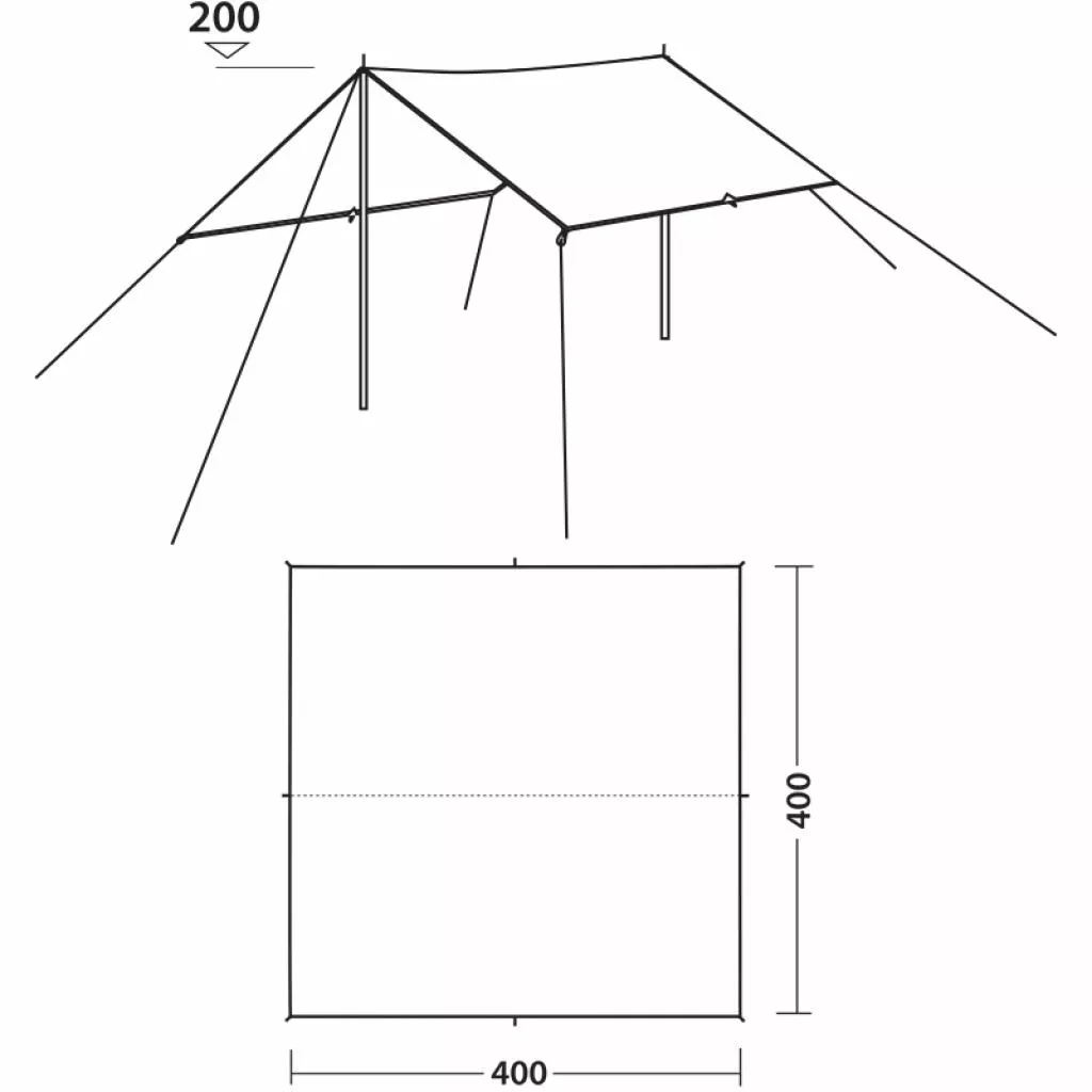 Тент Easy Camp Tarp из легкой прочной ткани размером 4 х 4 м создает дополнительное укрытие, которое можно легко и быстро разбить для защиты от дождя и солнца. Поставляется с двумя стальными вертикальными опорами высотой 2 м. Все восемь точек крепления оттяжек надежно прошиты, а также усилены вставками из ткани для дополнительной прочности и долговечности.