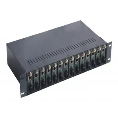 Новый вариант 14-ти слотового шасси FoxGate позволяет создать интегрированное решение на базе медиа-конверторов линейки FoxGate. Шасси позволяет Вам устанавливать несколько медиа-конверторов в 19 дюймовую стойку вместе с теми сетевыми устройствами, для которых нужно преобразовать среду передачи данных. Это обеспечивает экономию пространства, и ваша СКС будет выглядеть аккуратно. В шасси разрешен монтаж как классических медиа-конверторов FoxGate с внешним блоком питания так и SFP меди-конверторов. Шасси позволяет производить горячую замену любого элемента (медиа-конвертора).