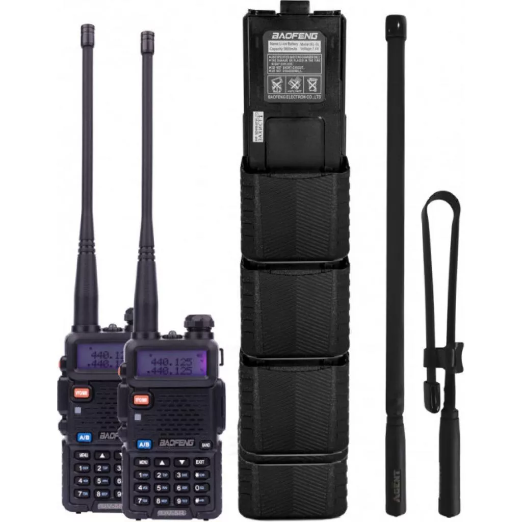| Комплектация | Рация UV-5R - 2шт Аккумуляторная батарея (LiION) 3800 мАч (НС) – 4 шт Антенна – 2 шт Антенны тактической AGENT ATA-89 - 2 шт Кли |