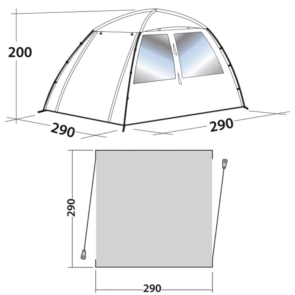 Easy Camp Daytent создает комфортное пространство для отдыха на природе, благодаря четырем прозрачным боковым окнам с занавесками, вшитому полу и большим передним и задним дверям. Переднюю или заднюю дверь можно превратить в навес от солнца с помощью стальных вертикальных стоек, а два регулируемых вентиляционных отсека на крыше обеспечивают отличную вентиляцию. Данную модель можно использовать в качестве шатра для дачи, летней столовой или беседки.