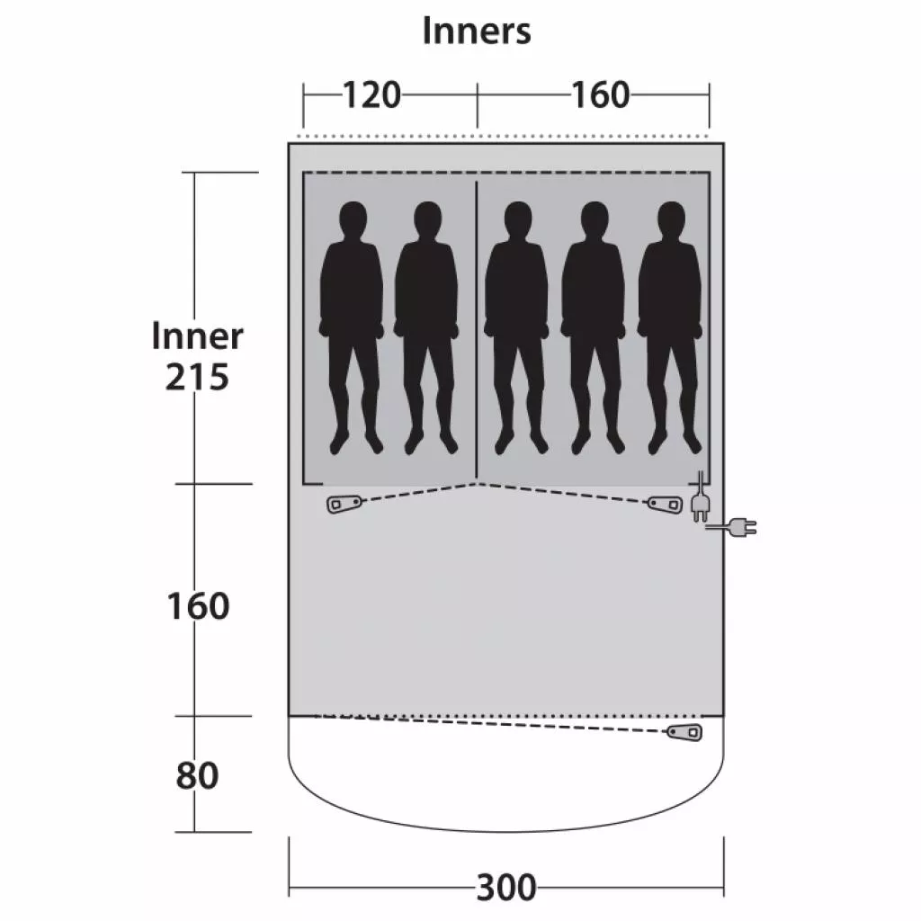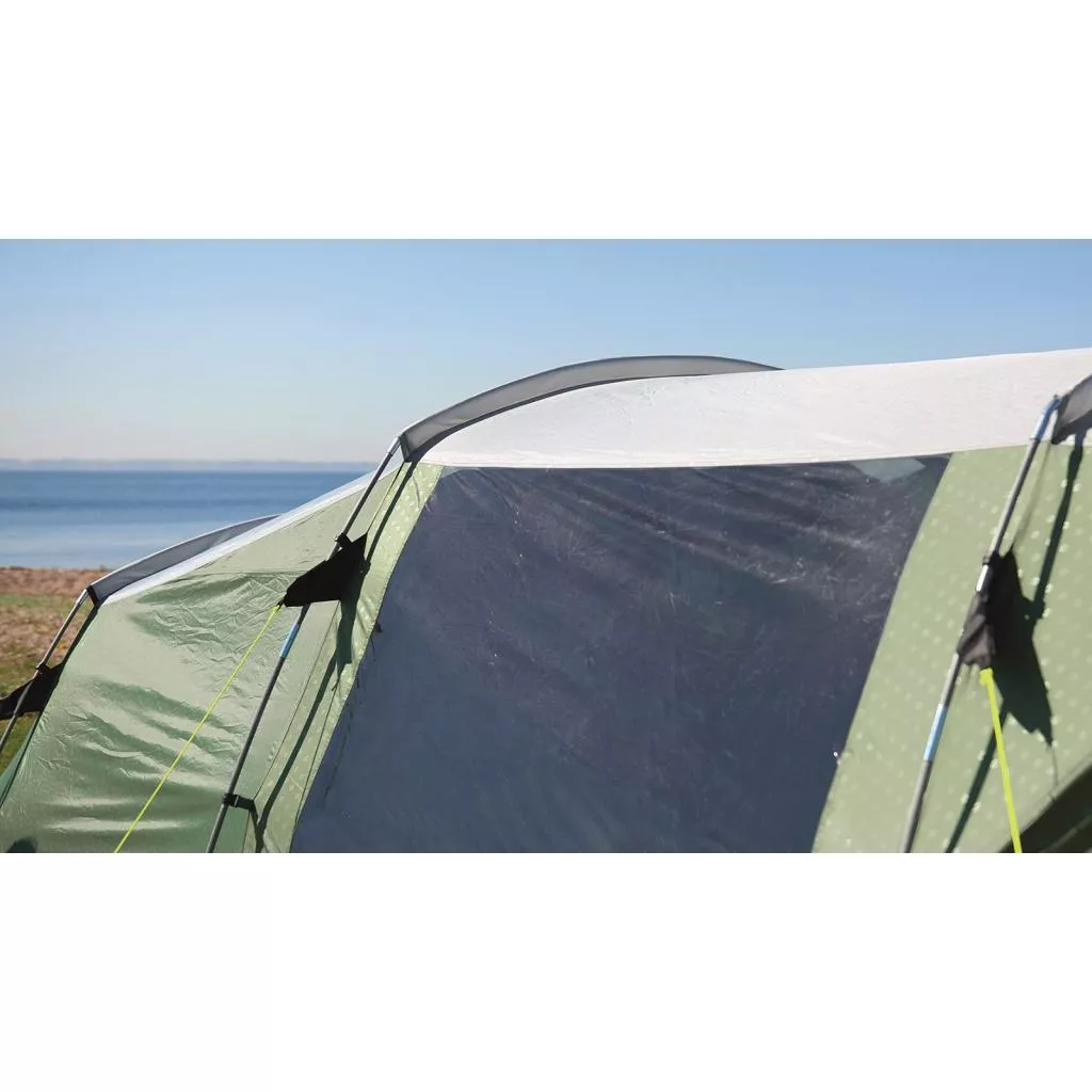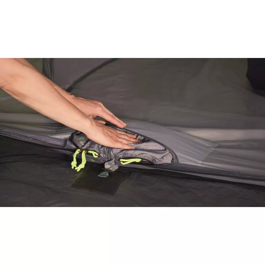 Outwell Franklin 5 - пятиместная туннельная палатка с просторной гостиной, двумя премиальными затемненными раздельными спальнями со съемными перегородками и длиной спального места 215 см. Благодаря системе Outwell 360° Access System есть возможность полного открытия спальни для увеличения площади гостиной комнаты. Передний навес защищает от дождя, а вместе с большими тонированными окнами создает открытое пространство для отдыха в тени, приема пищи или хранения вещей. Вентиляция и избавление от конденсата достигается за счет притока свежего воздуха через полностью сетчатые двери и заднюю широкую вентиляционную панель. Анти-москитные сетки на главной двери и верхней части дверей спален надежно защищают от насекомых. Крутые стенки и большое панорамное окно обеспечивают ощущение простора внутри палатки. Outwell Franklin 5 идеально подходит для отдыха с семьей.