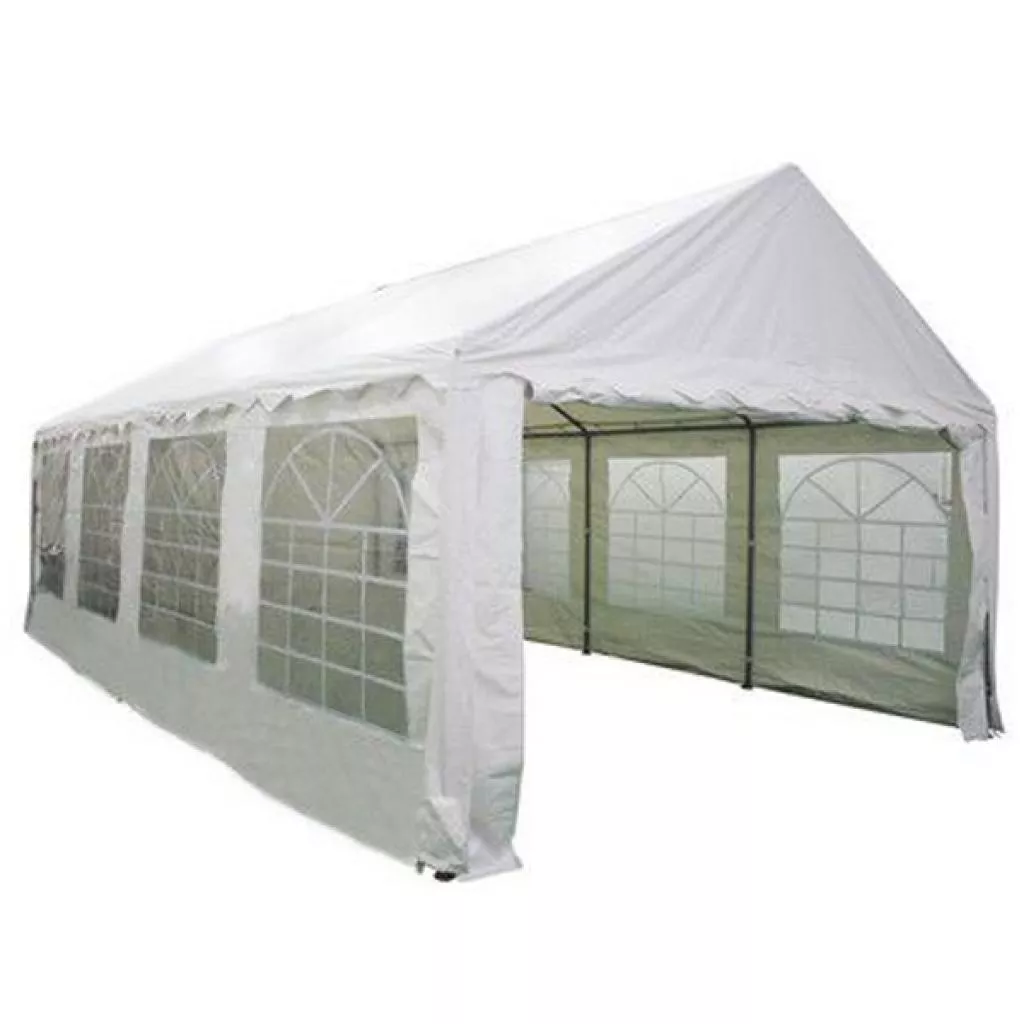 Материал тента устойчив к ультрафиолету и водостойкий. Стенки имеют высокую плотность – 280 г/м² ПВХ, а материал крыши еще более прочный и надежный и стабильный – 380 г/м² полиэстер с ПВХ покрытием. Тент не пропускает дождь (водяной столб 3000 мм).