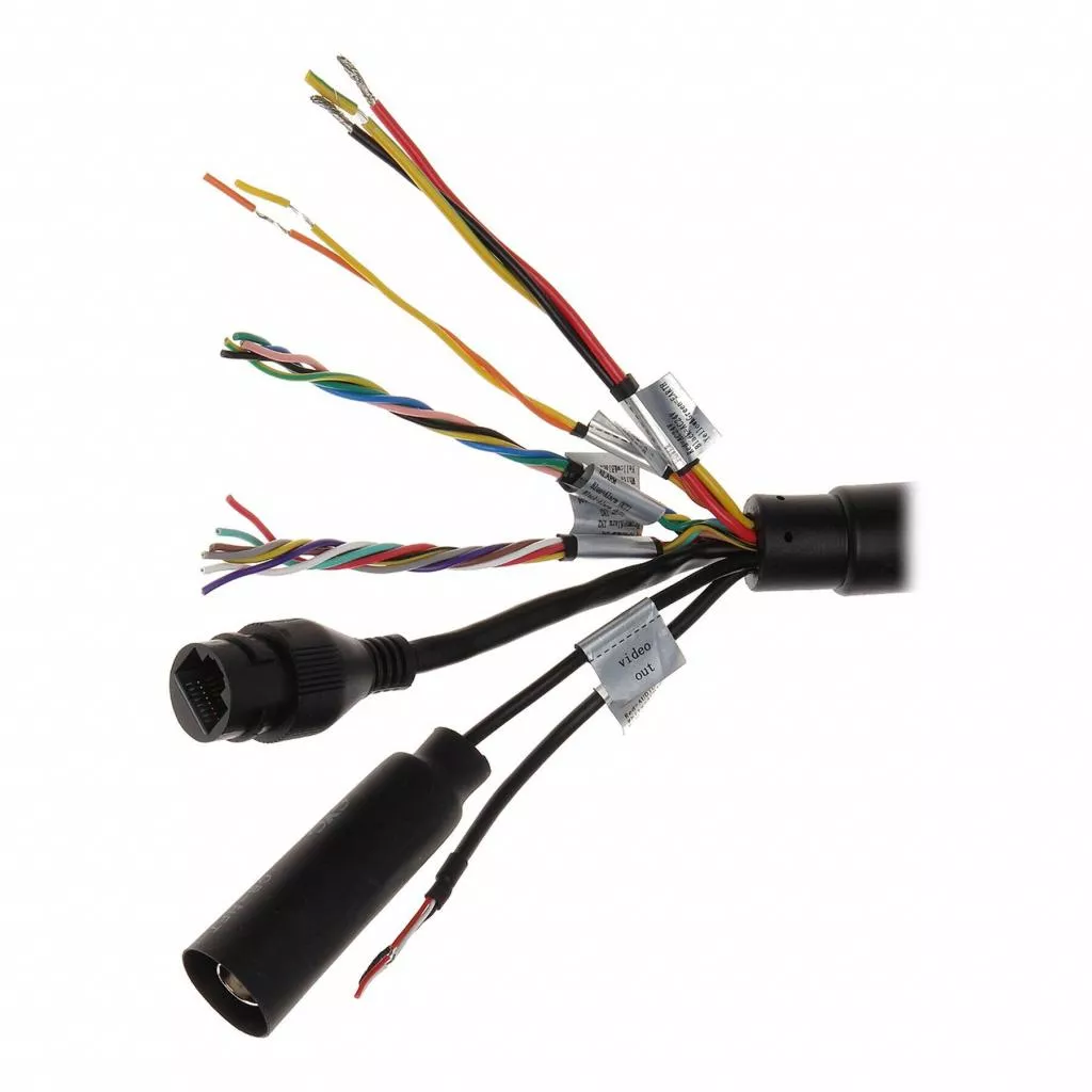 Материал корпуса устройства выполнен с металла. Внешние интерфейсы представлены в виде: питания, BNC выхода для настройки, RJ45 для подключения к сети с поддержкой технологии PoE+, RS485, клемы для подключения аудио устройств и устройств тревоги.