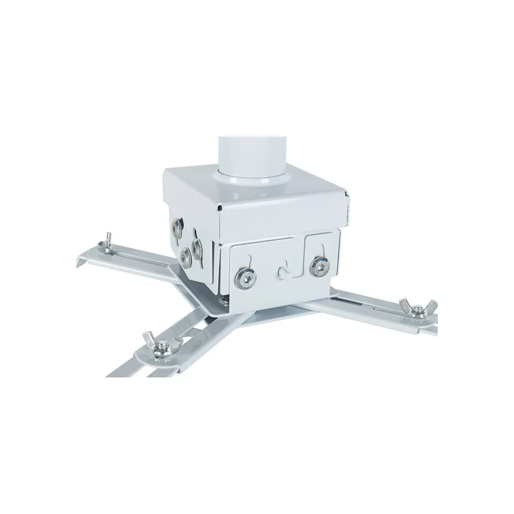CHARMOUNT PRB55-200 white предназначен для проектора весом до 25 кг. Кронштейн крепится к потолку, дает возможность наклонить проектор от - 15 ° до + 15 ° и регулировать отступление от потолка в пределах 550-2000 мм. Видстинь между адаптерами регулируется от 210 до 280 мм.